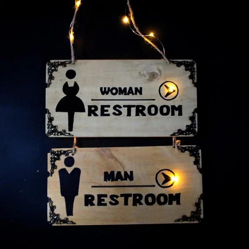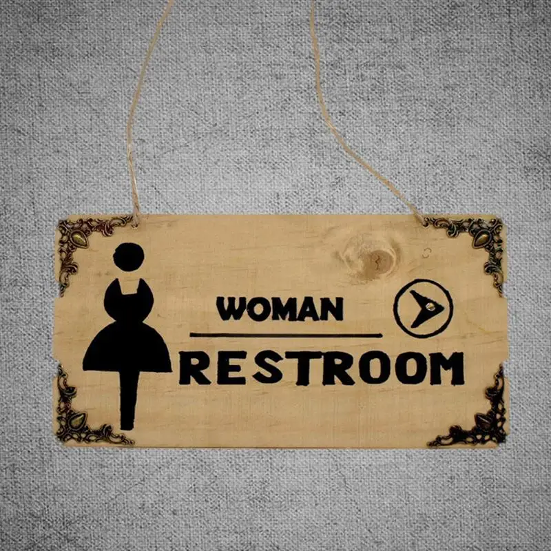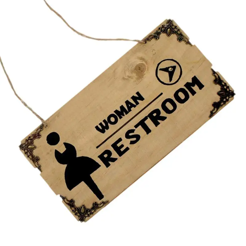 1pc Sign Tag Hanging WC Restroom Wooden Creative Plaque Sign Board Decoration Directional Signs for Home Cafe Club Bar