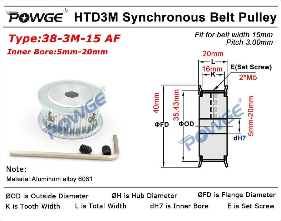 4 шт. x38 зубьевHTD 3 м Синхронный шкив (8 шт. х винтов M4/M5 1 шт. х шестигранный ключ)