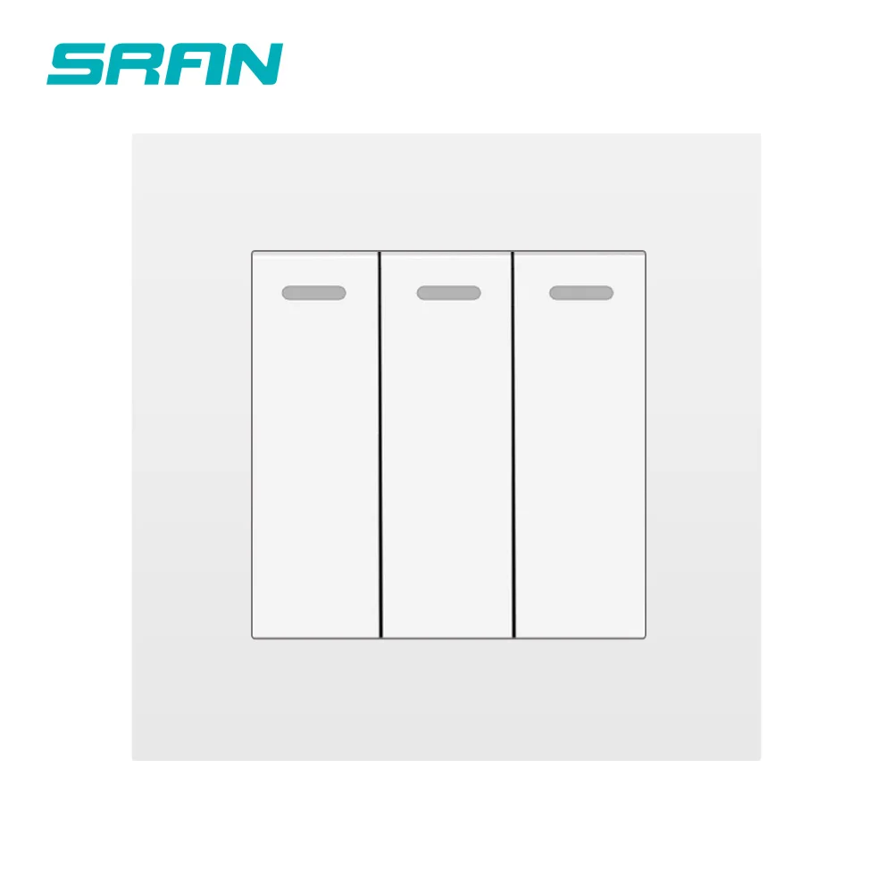 86 мм * 86 мм, необходимо 86 коробок Настенный выключатель 16 А, 250 В, 3 дна со светящейся лентой Переключатель вкл./выкл. 3 gang 1/2 way и сброс