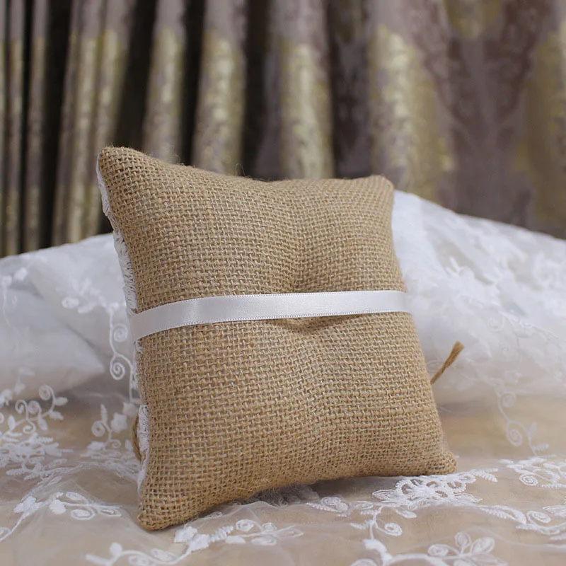 Рустикальное льняное кружевное свадебное кольцо, свадебное украшение, праздничные принадлежности 15*15 см, кольцо, подушка, винтажный европейский стиль