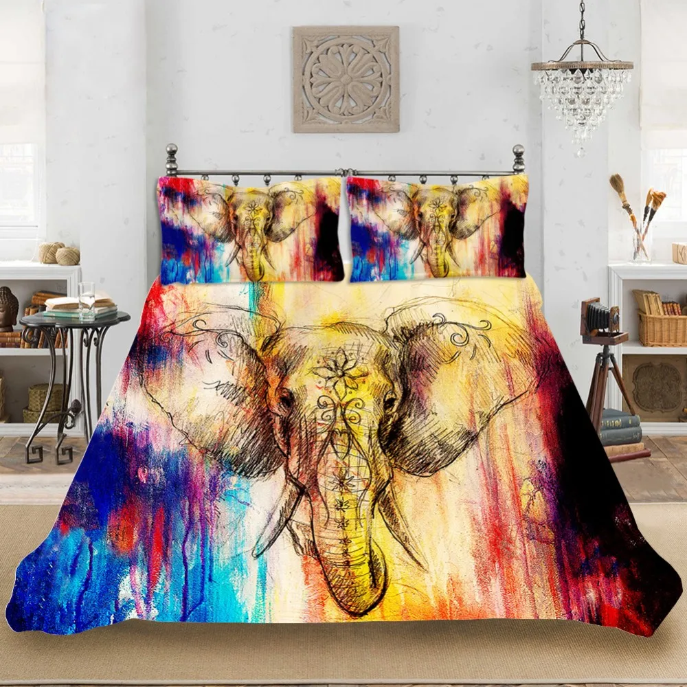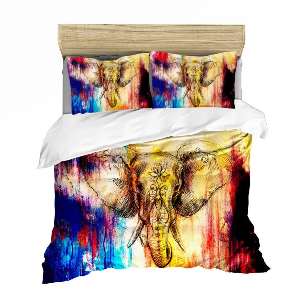 Пододеяльник с рисунком слона, 2/3 шт., набор постельного белья с рисунками животных, наволочка, двойной, Королевский размер, постельное белье, фантастические цвета
