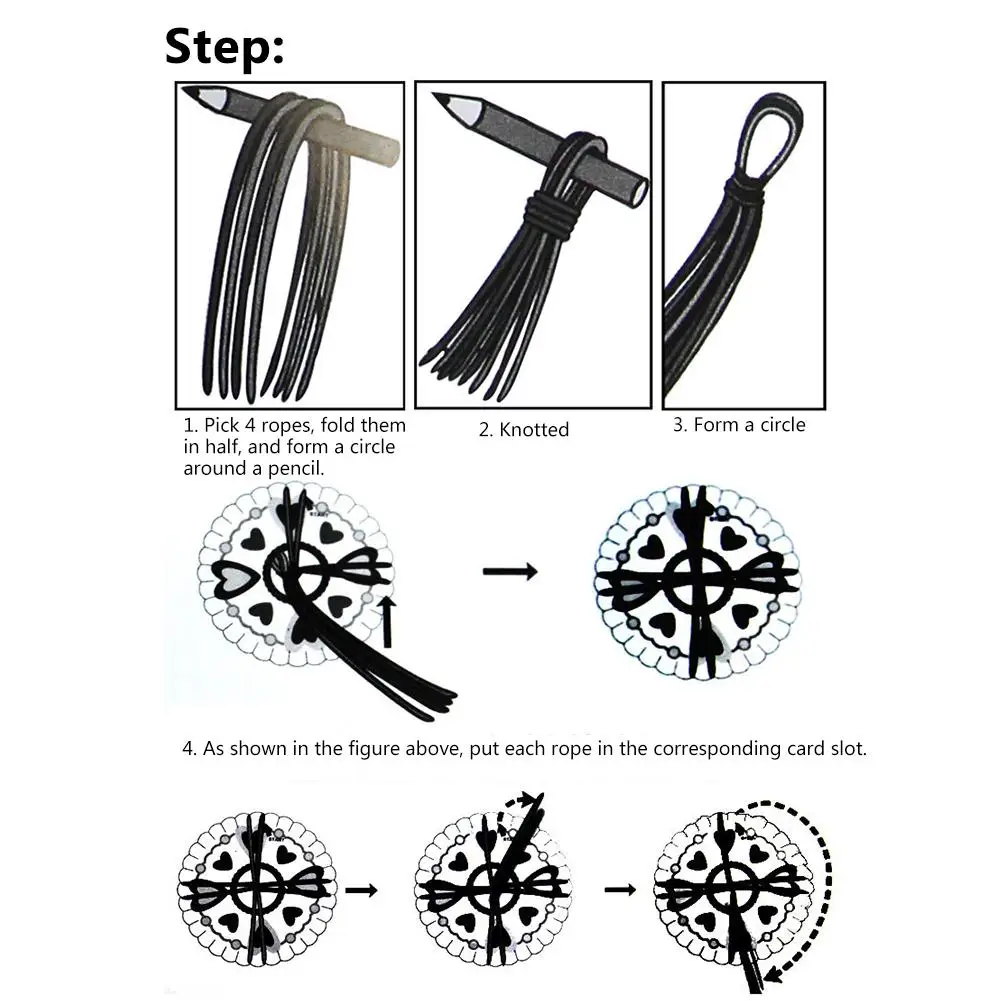 Нужно сделать паузу: Положите Хвост Веревки в свой последний тканый слот для карт и продолжите там, когда плетение будет достаточно длинным, вытяните все веревки и завяжите их.