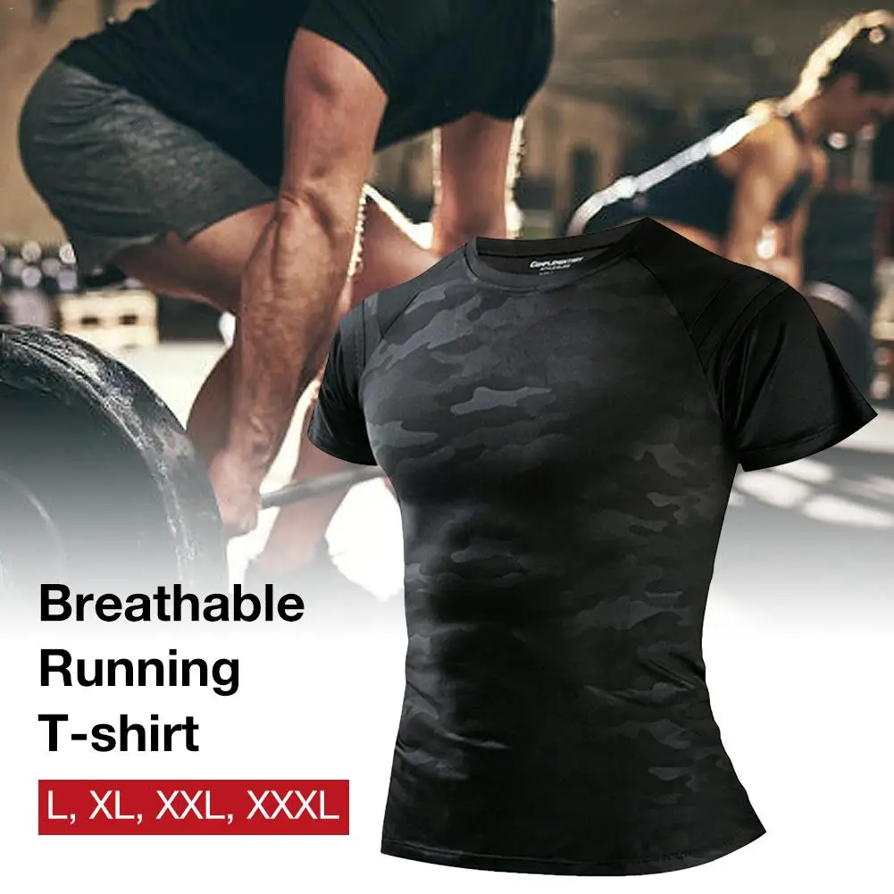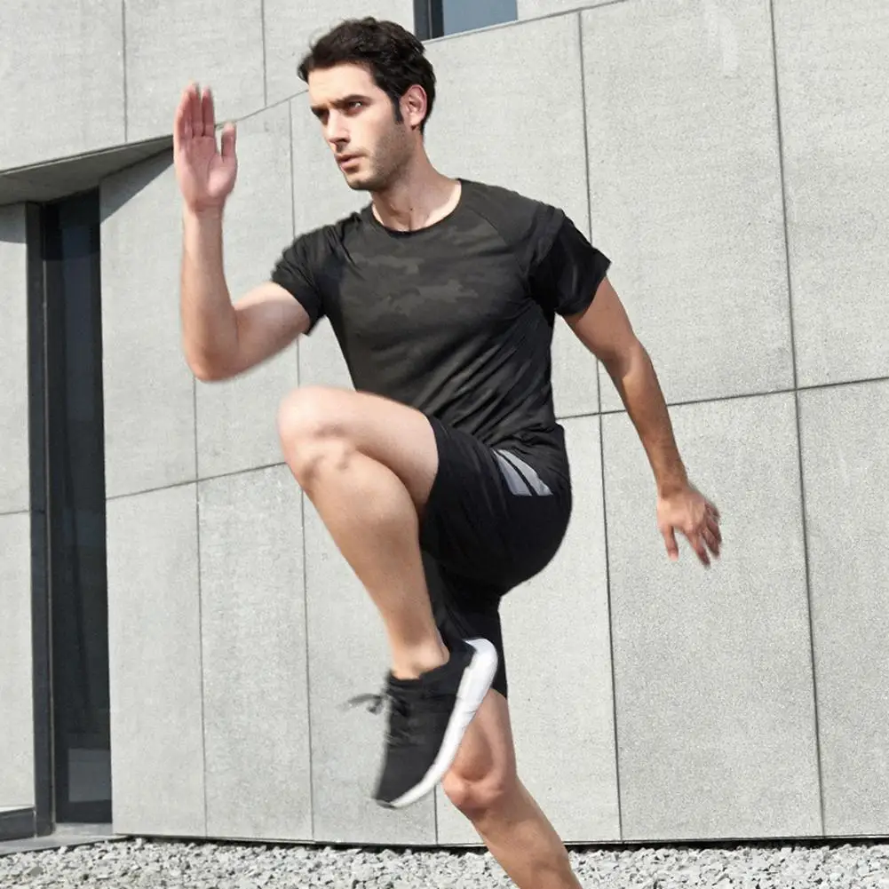 Мужская быстросохнущая тренировочная футболка для бега с короткими рукавами для фитнеса черная камуфляжная холодная ткань 5