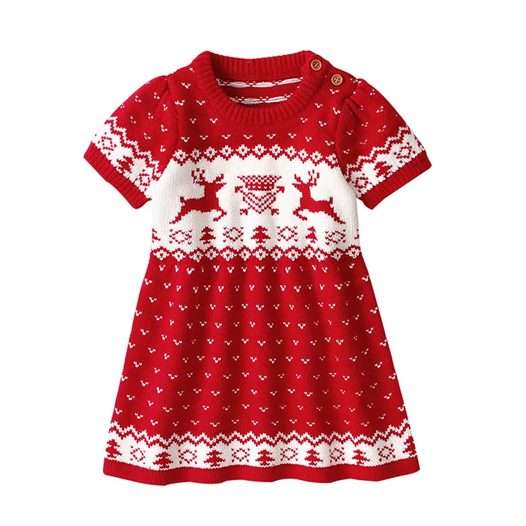 Рождественское вязаное платье принцессы с оленем для маленьких девочек