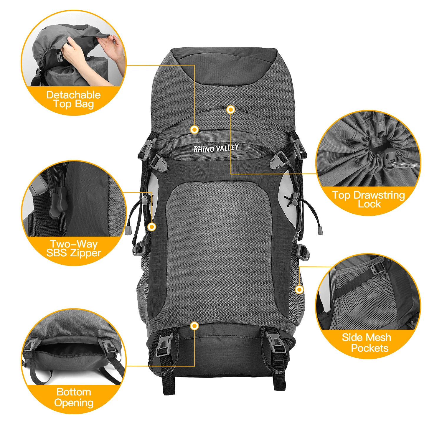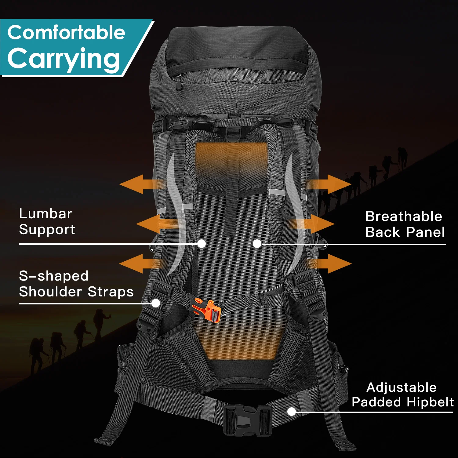 Верхний материал-Изготовлен из высококачественного износостойкого нейлона, внешний слой и 210 т лавсан внутренний слой с большим мастерством, легкий и прочный. Это может предотвратить промокание всех ваших предметов в течение короткого времени, когда дождь наступает. Большая емкость-60 л большая емкость с 4 комнатами. Одна съемная верхняя комната может использоваться в качестве поясной сумки; самая большая основная комната для хранения больших предметов; одна Нижняя комната обеспечивает дополнительное пространство для хранения других вещей; один передний карман удобен для размещения важных и маленьких предметов. Отличная конструкция-поддерживается пластиковой стали и pe пластиковая пластина в соответствии с эргономикой. 3D сетчатый материал, s-образный плечевой ремень и сверхплотная дышащая поддержка талии эффективно снимают нагрузку на плечи и спину. Функция подвешивания-различные нейлоновые лямки и пряжки представляют собой прочную подвесную систему, отлично подходит для подвешивания треккинговой палки, палатки, спальных подушек, опоры для палаток, гамака и т. Д. Дизайн CONFEDERATE-поставляется с дождевой крышкой, чтобы предотвратить все ваши вещи от влажных; также оснащен свистком для выживания; разработан с выходом воды для легкой питьевой воды; удобная ручка для переноски.