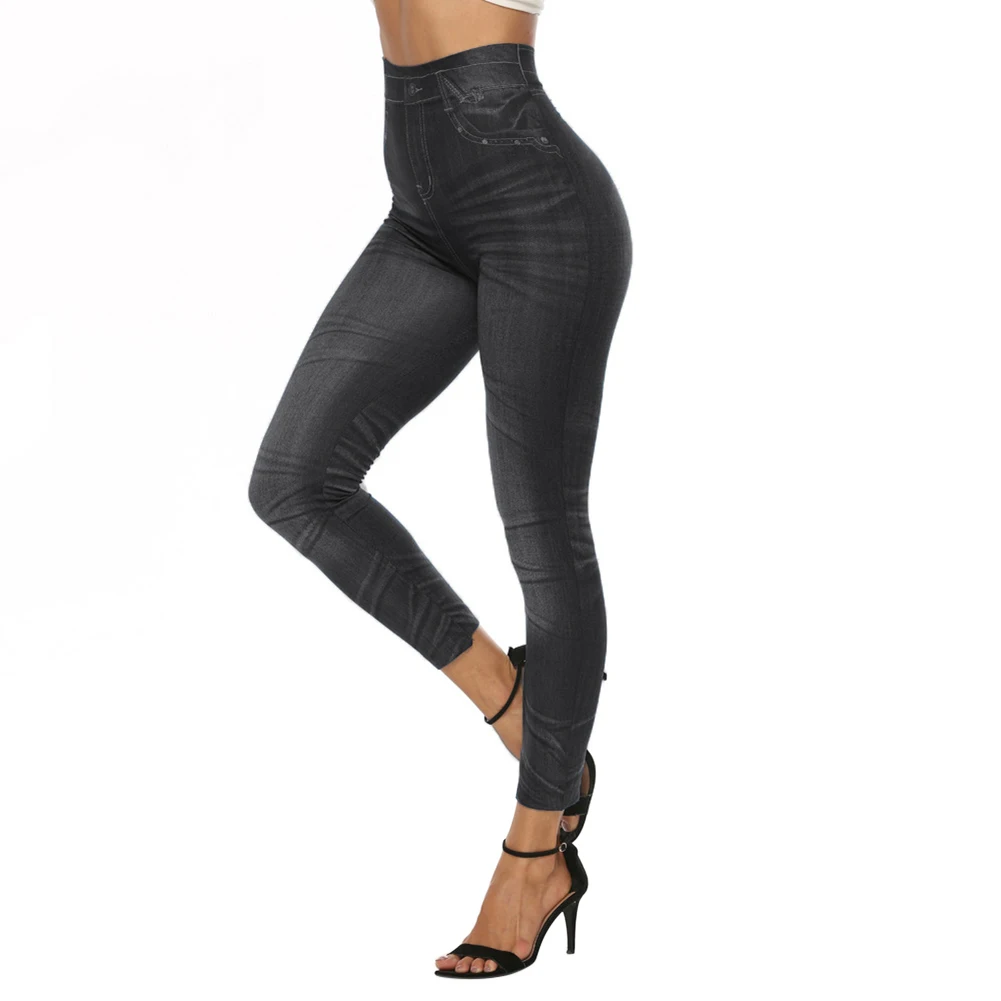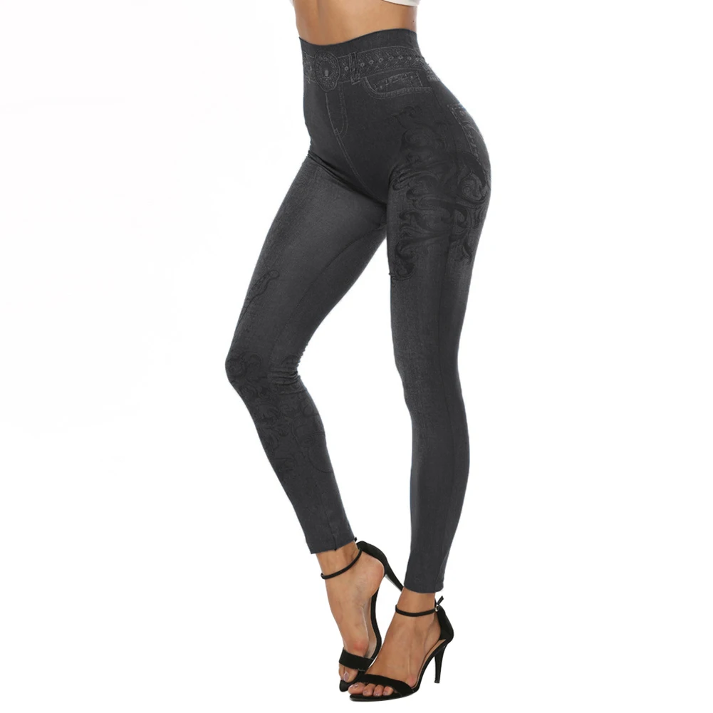 Особенности: эластичные, обтягивающие, удобные, с подъемом на бедрах, имитация джинсовой ткани