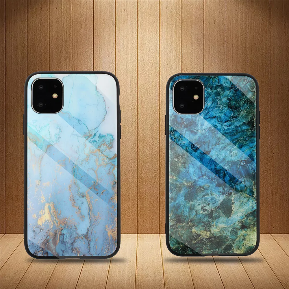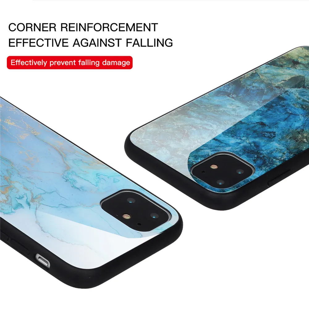 Для iPhone 11ProMax чехол из закаленного стекла противоударный мраморный Цветной корпус для iPhone 11Pro iPhone 11
