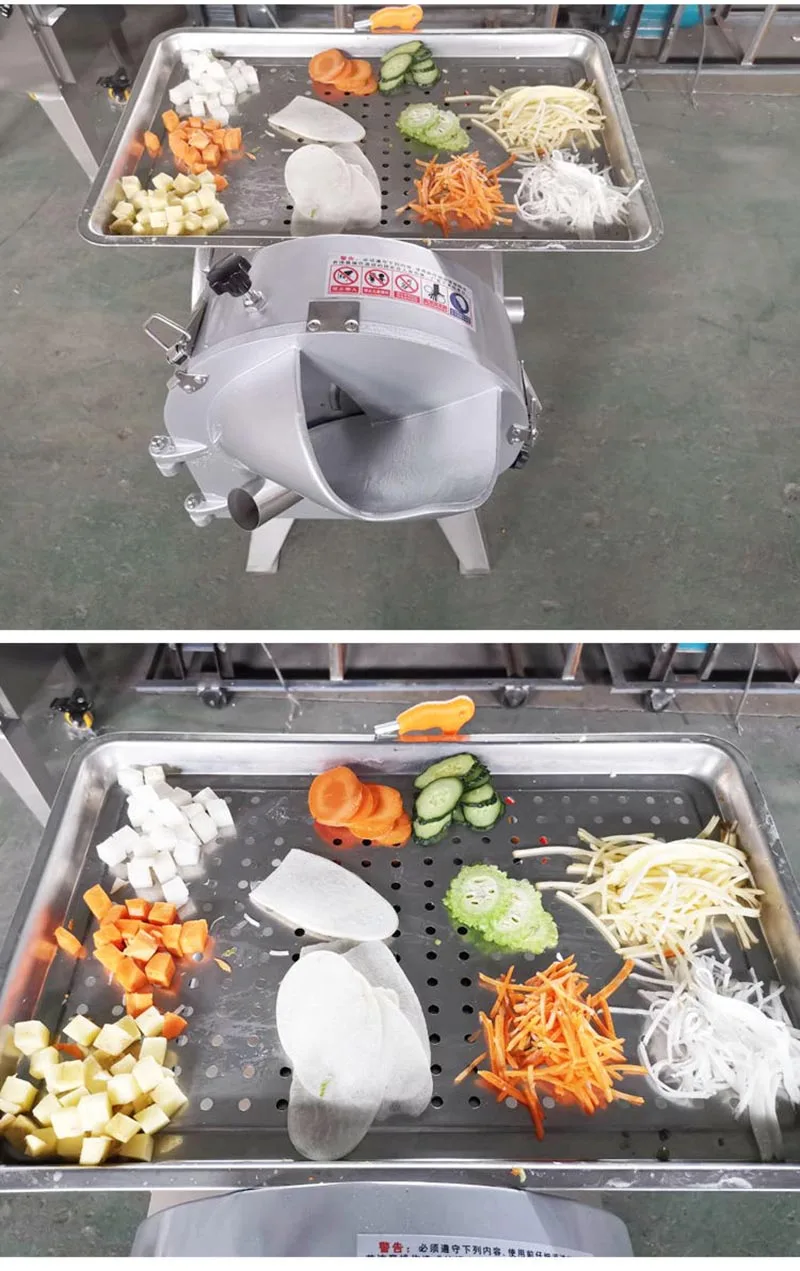 Многофункциональный коммерческий Овощной станок для резки, обновленный подающий вход, импортный размер, двойной дизайн Режущая головка из нержавеющей стали формируется один раз, и три режущего диска можно переключить по желанию. Он делится на нож для нарезки, резак для проволоки и нож для нарезки. Все корпус из нержавеющей стали более прочный, высвобождающий руки для экономии времени и усилий, раздельное питание между двумя портами, удобное и быстрое, экономия времени и усилий