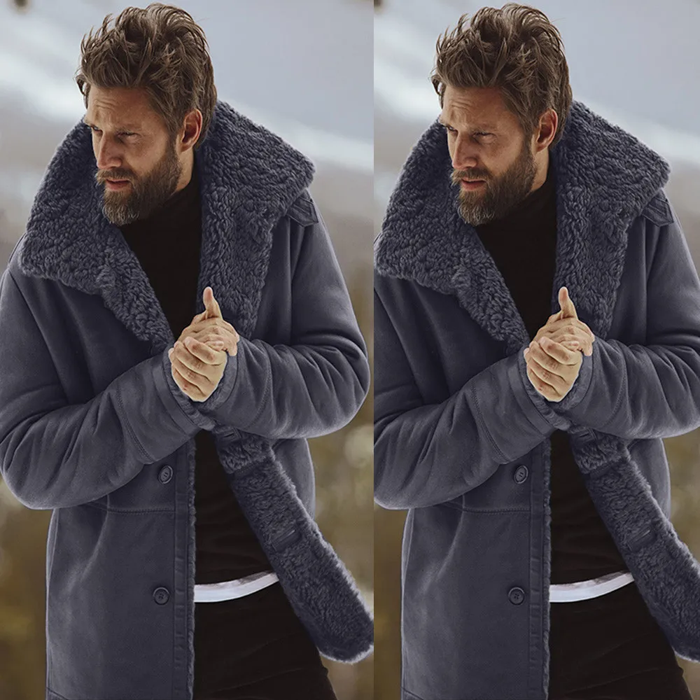 Мужская зимняя куртка из овечьей кожи, теплая шерстяная подкладка, Куртки из искусственной овечьей шерсти