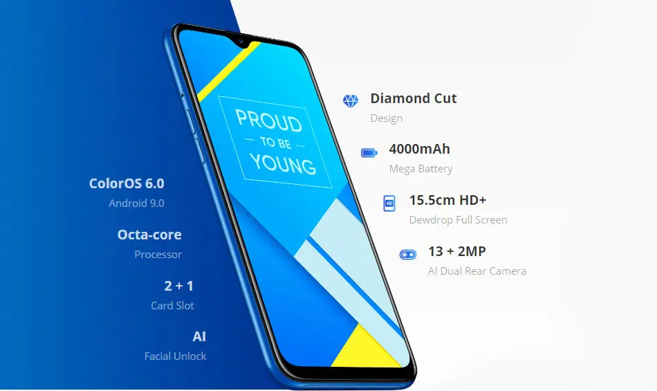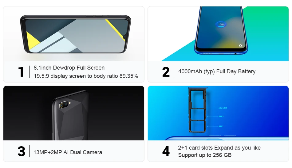 Realme C2 глобальная версия(Поддержка B7/B20/B28) Оперативная память+ Встроенная память 2 ГБ + 16 Гб Процессор Восьмиядерный процессор MTK Helio P22 Автомобильная камера заднего вида Задняя камера 13 МП + 2 МП Фронтальная камера 5MP AI Батарея 4000 мАч (тип); Дисплей 6,1 дюйма; 1520*720 P FHD + россыпь полный экран OS ColorOS 6,0 на базе Android P Слот для карт памяти Nano SIM * 2 + Micro SD * 1 Особенности Google Play,, OTA Update, Face ID, Dual 4G LTE Сеть 2G: GSM: B2: 1900/B3: 1800/B5: 850/B8: 900