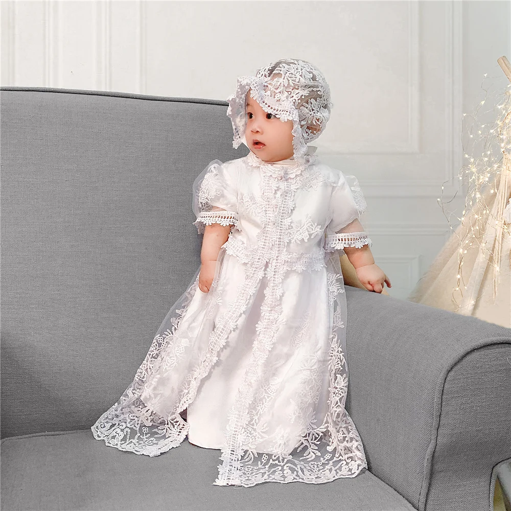 Детское платье кружевное детское вечернее платье с короткими рукавами для первого дня рождения для подружки невесты, платья для крещения белого цвета и цвета слоновой кости