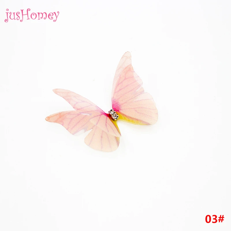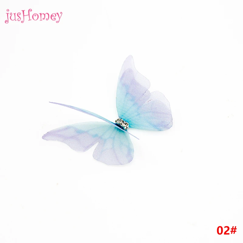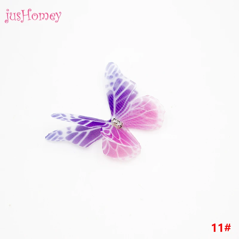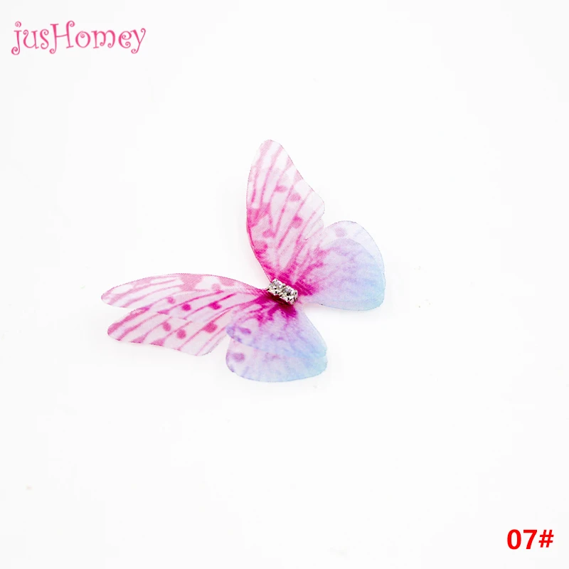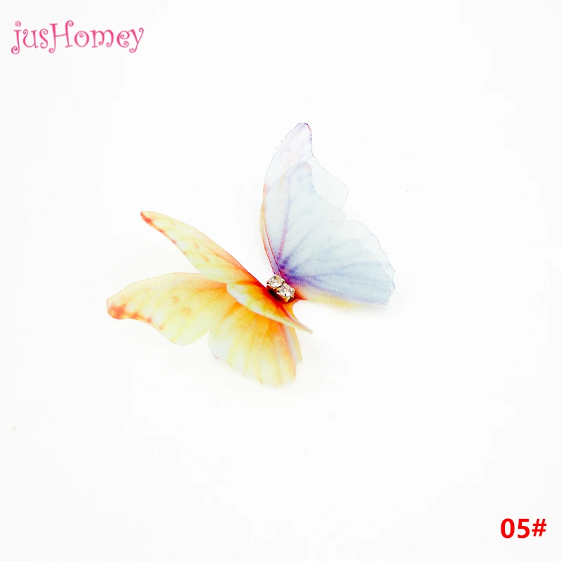 100 шт. двухслойные Аппликации Бабочки из органзы 48 мм/30 мм шелковые бабочки с Стразы для самостоятельного изготовления ювелирных изделий, чокер, заколки для волос
