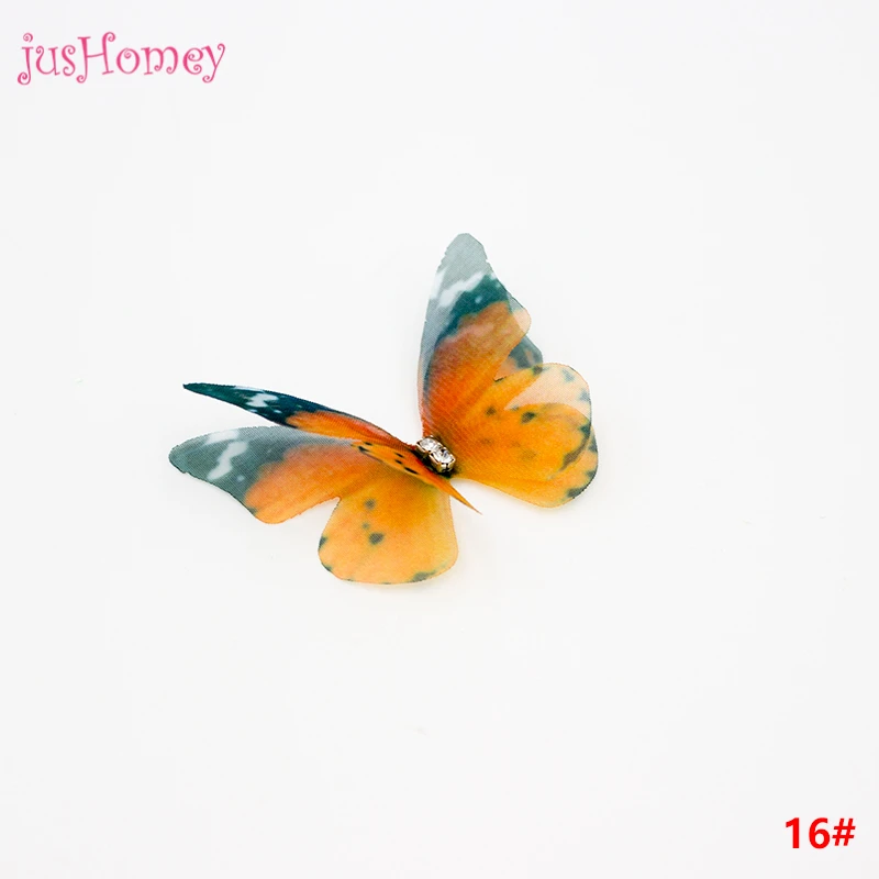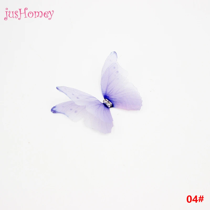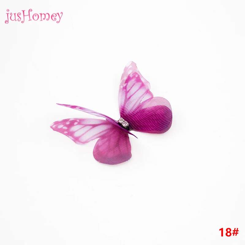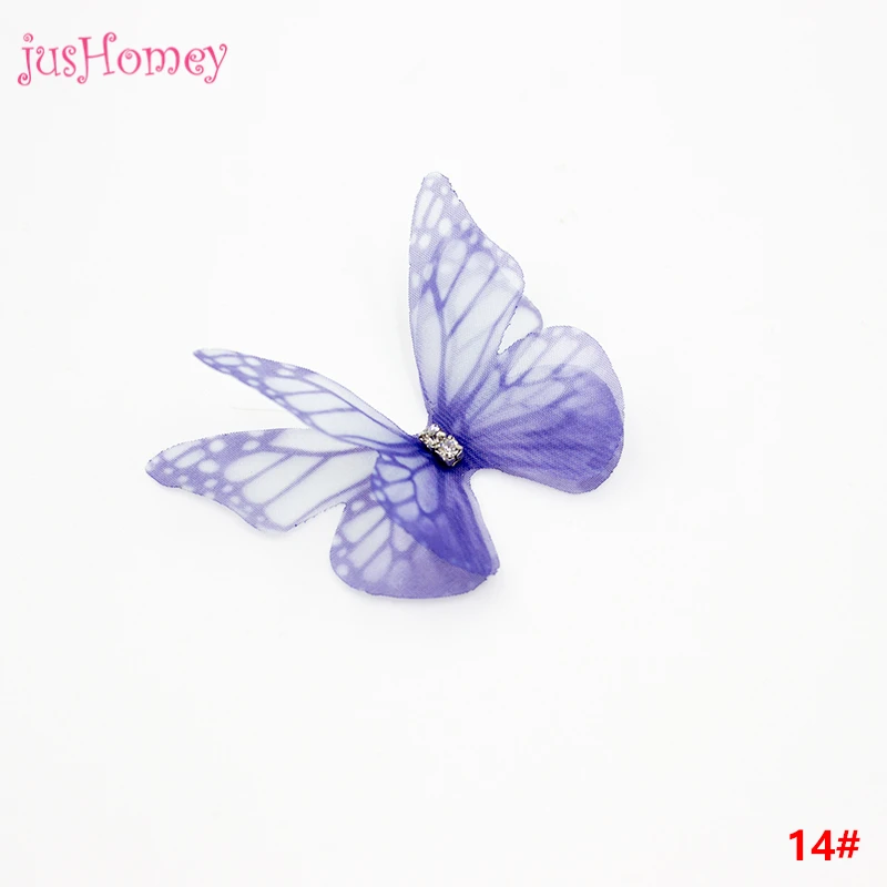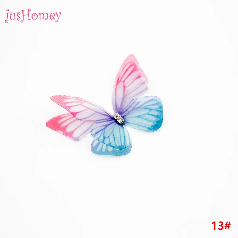 100 шт. двухслойные Аппликации Бабочки из органзы 48 мм/30 мм шелковые бабочки с Стразы для самостоятельного изготовления ювелирных изделий, чокер, заколки для волос
