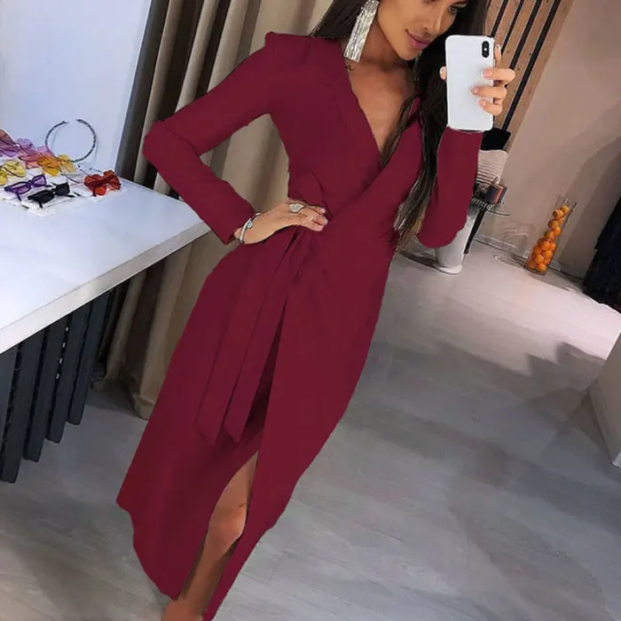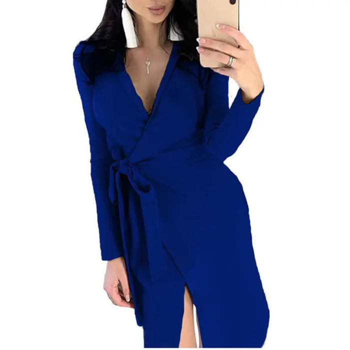 Новое Женское платье с глубоким v-образным вырезом и длинным рукавом, раздельное Платье-туника для вечеринки MV66