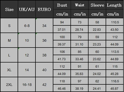 Размер евро размер UK/AU Размер Бюст Талия Длина рукава