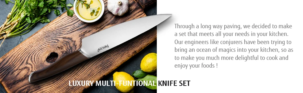 Благодаря двум уникальным болерам, которые помогут вам получить необыкновенный баланс, ножи не будут разрознены. Кроме того, двойная опора означает чудесную долговечность и роскошный вид, поэтому это будет фантастическим подарком, когда вы заберете его своим друзьям, коллегам, членам семьи и так далее. Деревянная подставка из акации: как мы все знаем, дерево из акации является своего рода элегантным, прочным и роскошным деревом, мы использовали его, чтобы построить наш красивый стенд, чтобы дать вам прекрасный опыт приготовления пищи! 'Набор из 15 предметов, мы собрали океаническую статистику, которая показывает предпочтения клиентов ножей, чтобы сделать этот многофункциональный набор ножей, который удовлетворяет все ваши потребности в вашей кухне, а также может быть причудливым украшением в вашем СТОЛЕШНИЦЕ!