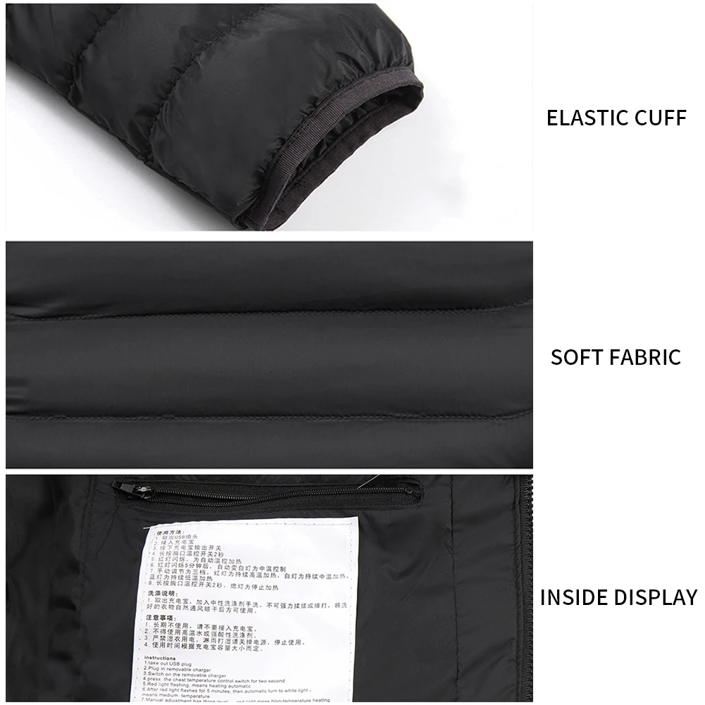 Импортный нагревательный провод из углеволокна большой площади из Японии, с использованием инфракрасного тепла, без вредного излучения, более безопасный и экологически чистый, позвольте вам использовать более комфортно и будьте уверены. Один кусок нагрева три скорости контроля температуры, скорость нагрева равномерно нагревается, вы можете выбрать механизм в соответствии с вашей желаемой температурой, чтобы удовлетворить ваши различные потребности. Можно стирать в стиральной машине или вручную, но не выкручивать. Водонепроницаемая и теплая производительность, Непрерывное время нагрева, долгая Мобильная мощность 10000 мАч может держать нагрев в течение 8 часов, позволяет держать тепло в холодное время на открытом воздухе 5 В напряжение безопасности 3 нагревательные элементы из углеродного волокна (задняя, левая и правая манжеты) делают вас более комфортным, подходит для езды на снегоходах, мотоцикле, альпинизме, кемпинге, походах, лыжах, рыбалки, для охоты или офиса, повседневной жизни, осени и зимы; Материал: полиэстер Материал Полиэстер Подкладка: полиэстер Наполнитель: хлопок одеяло Цвет: черный/красный Размер: L, XL, XXL, XXXL, XXXXL Мощность Интерфейс: USB Мощность: 5 В/2 а Мобильная мощность (без источника питания) Положение шестерни: Третья передача, теплая Шестерня 45°c (красный светильник), комфортная Шестерня 35°c (белый светильник) Энергосберегающая Шестерня 25°c (синий светильник) Возраст использования: для взрослых Зона нагрева: задний, левый и правый манжеты Функция: сохраняет тепло, брызги, холода Упаковка: теплая куртка * 1 Usb-кабель для зарядки * 1 Инструкции по использованию: 1. Снимите usb-разъем 2. Вставьте съемное зарядное устройство 3. Переключайте съемное зарядное устройство 4. Нажмите переключатель контроля температуры груди в течение двух секунд 5. Красный светильник мигает, указывая на Автоматический нагрев 6. После того, как красный светильник мигает в течение 5 минут, он автоматически превратится в белый светильник, указывая среднюю температуру. 7. Есть три уровня ручной регулировки, и красный светильник показывает непрерывный высокотемпературный нагрев. Белый светильник означает непрерывный Средний нагрев, синий светильник-непрерывный низкотемпературный нагрев 8. Нажмите переключатель контроля температуры груди в течение двух секунд, выключите светильник и остановите нагрев.