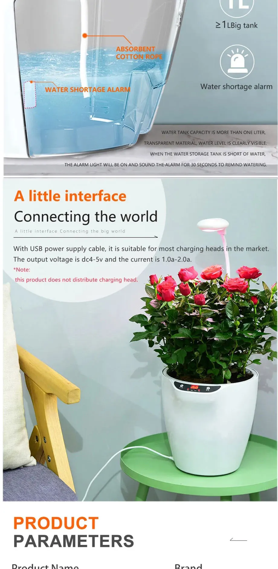 Функция введение 1, с умным переключением, режим полного спектра 2, регулируемый режим чтения (обычный режим настольной лампы, регулируемая яркость): Поднимите цветы, прочитайте два правильных, то есть лампа для роста растений, но также защита глаз чтения, уход за растениями и глазами; 3. Оповещение о нехватке воды: в тех случаях, когда резервуар для воды, за исключением воды, звуковой сигнал индикатор горит и 30с отсчетом раздастся предупреждающий звуковой сигнал. Напоминанием о том, чтобы добавить воды; 4. Новая гидропонная технология: специальная посадка позволяет избежать загрязнения вредителями, вызванного почвой, и устраняет рост комаров. В то же время, используя космический метеорит Средний для повышения скорости прорастания растений, он более подходит для роста растений; 5, специальное Интеллектуальное освещение, настройки раковины: путем изучения спектра солнечного света, используя специальный светодиодный ламповый бисер, чтобы наполнять растение, так что фотосъемка, так что Что растения имеют достаточно Ян Гуань и водоснабжения, избегая крещения уличного ветра и дождя, делает цветы более яркими и движущимися, позволяя семена цветов прослужить Больше Параметр продукта Материал: АБС-пластик Интерфейс, USB Интерфейс Размеры: как показано на рисунке Комплектация: 1 шт. * горшок для выращивания цветов 1 шт. * линия передачи данных 1 шт. * Инструкция по эксплуатации Завод, пригодные для посадки A. цветы: роза, Бегония, Петуния, Колеус, пятизвездочная, Орегон, вэньжу, кампануксия, Гипсофила, лилия, Подсолнух, хризантема, тюльпан, Панси, хия, Daffodil, Мимоза, цикламен перидинкле, шесть раз, ароматный цвет птицы, cockscomb и так далее. B. Травы: Василий, ароматная трава, розмарин, тимьян, мускус, мята и т. Д. C. Овощи: салат, шпинат, сельдерей, шпинат, лук, салат, петрушка, капуста. D. Мелоны и фрукты: тыква (карман), эдамаме, зеленые бобы, помидоры, перцы, огурец, баклажаны.