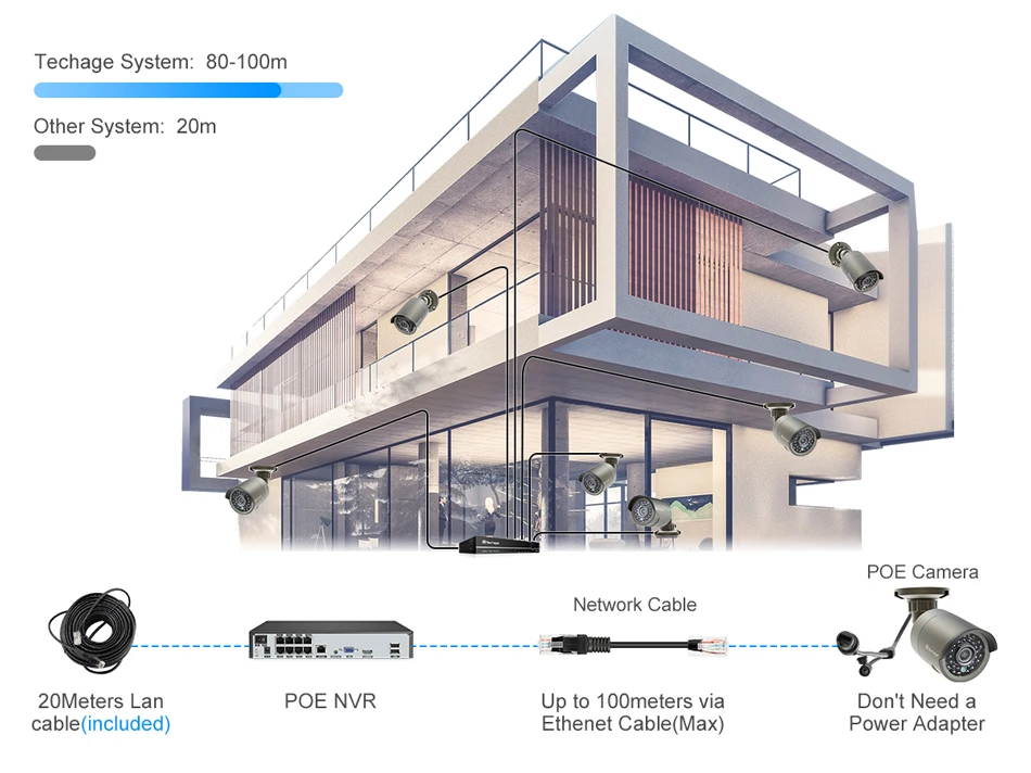 Система видеонаблюдения Techage 48 В, POE