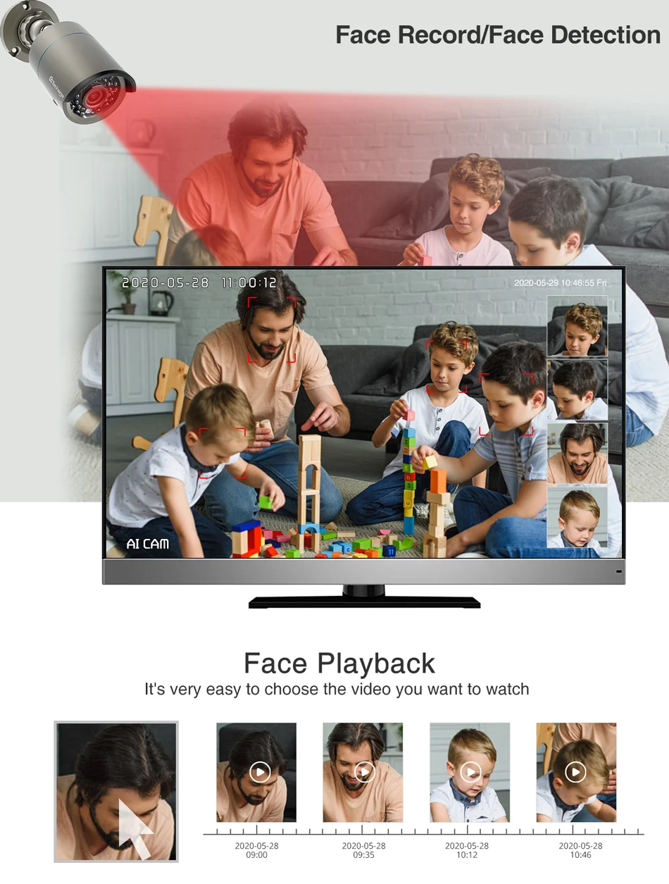 Функция записи распознавания лица: при обнаружении лица NVR будет сохранять кадры на жесткий диск, не пропуская ни одного человека, тем самым улучшая точность оповещения.