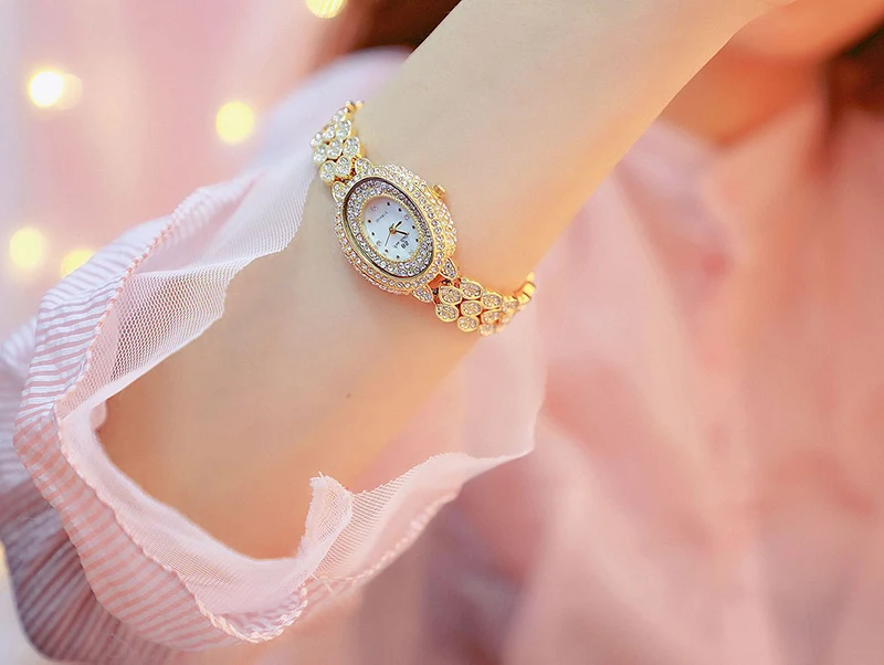 Женские наручные часы с бриллиантами, золотистые часы для женщин, 2019