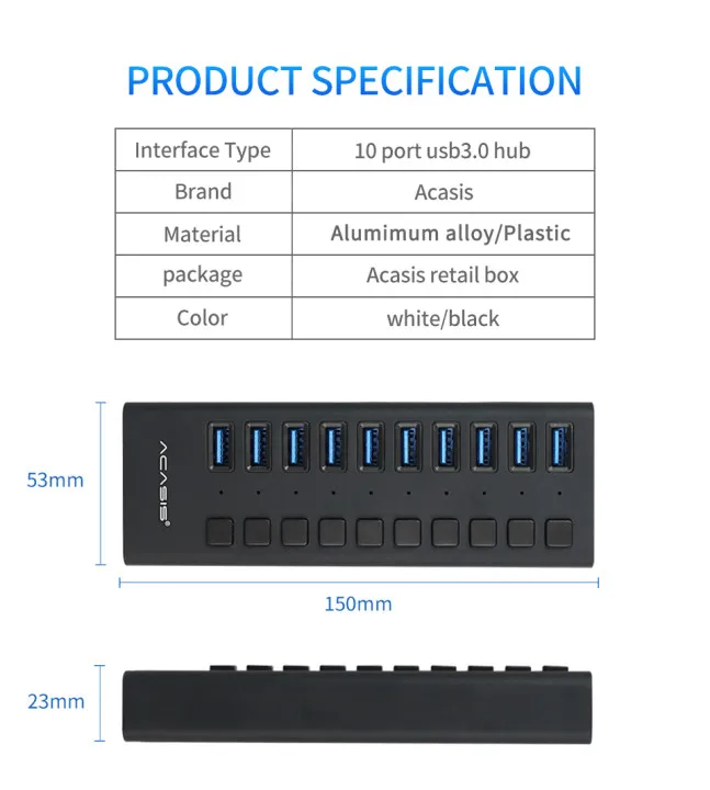 Примечание: Есть 9 моделей на выбор, пожалуйста, выберите подходящую модель перед покупкой Многопортовый расширитель USB: наш usb-концентратор имеет 10 портов передачи данных USB, что позволяет очень легко подключить несколько usb-устройств к ПК или ноутбуку одновременно, например, клавиатуру, мышь, картридер, веб-камера и многое другое. Порты зарядки: Этот usb-концентратор расширения поставляется с портом быстрой зарядки, который позволяет заряжать мобильные телефоны, планшеты, камеру и динамики и многое другое, и автоматически обнаруживает и обеспечивает оптимальный зарядный ток. Индивидуальные переключатели ВКЛ/ВЫКЛ: Этот usb-разветвитель с 10 портами имеет встроенные переключатели вкл/выкл со светодиодными индикаторами для каждого порта. Вы можете включить/выключить отдельный порт USB без необходимости отключать весь концентратор. Высокая скорость данных: Этот usb-концентратор 3,0 обеспечивает скорость передачи данных до 5 Гбит/с, что означает, что вы передаете hd-фильм за считанные секунды, и он обратно совместим с USB 2,0/1,1. Широкая совместимость: Он совместим с любыми устройствами USB 3,0, USB 2,0, USB 1,1 и USB 1,0. Он также совместим с большинством операционных систем: Windows XP/2003/Vista/7/2008/8 и Mac/MacBook Air/MacBook Pro и многое другое. Это отличный аксессуар для учебы, школы или офиса.