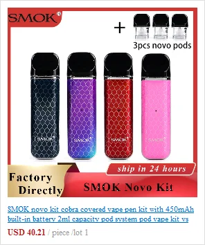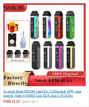 Получить Мини-Pod Kit от SMOKЭто портативная система pod, работающая от встроенной батареи емкостью 1200 мАч. С регулируемым выходным диапазоном от 5 до 40 Вт, он может удовлетворить ваши различные требования к пару. Он оснащен емкостью E-juice 3,7 мл, которая может удовлетворить Ваш дневной пар. Благодаря легкому дизайну наполнения дна, вы можете легко пополнять электронный сок. Он принимает экологически чистый материал-PCTG, который одобрен FDA и ЕС для любого типа применения с пищевым контактом. Благодаря стеклу 2.5D arc edge на обеих панелях и нанесению лазерного УФ-переноса текстурирования под стеклянными панелями, он может дополнительно добавить к 3d-эффектам. Также в комплект входят водонепроницаемые и пыленепроницаемые функции, которые обеспечивают безопасность в дождливой среде и предотвращают попадание пыли. Он оснащен 0,96 "tft-экраном, который может показать вам конкретные данные vape в четкой форме. Катушка серии RPM даст вам различный опыт vaping. Доступны 2 цвета: фиолетовый и синий.