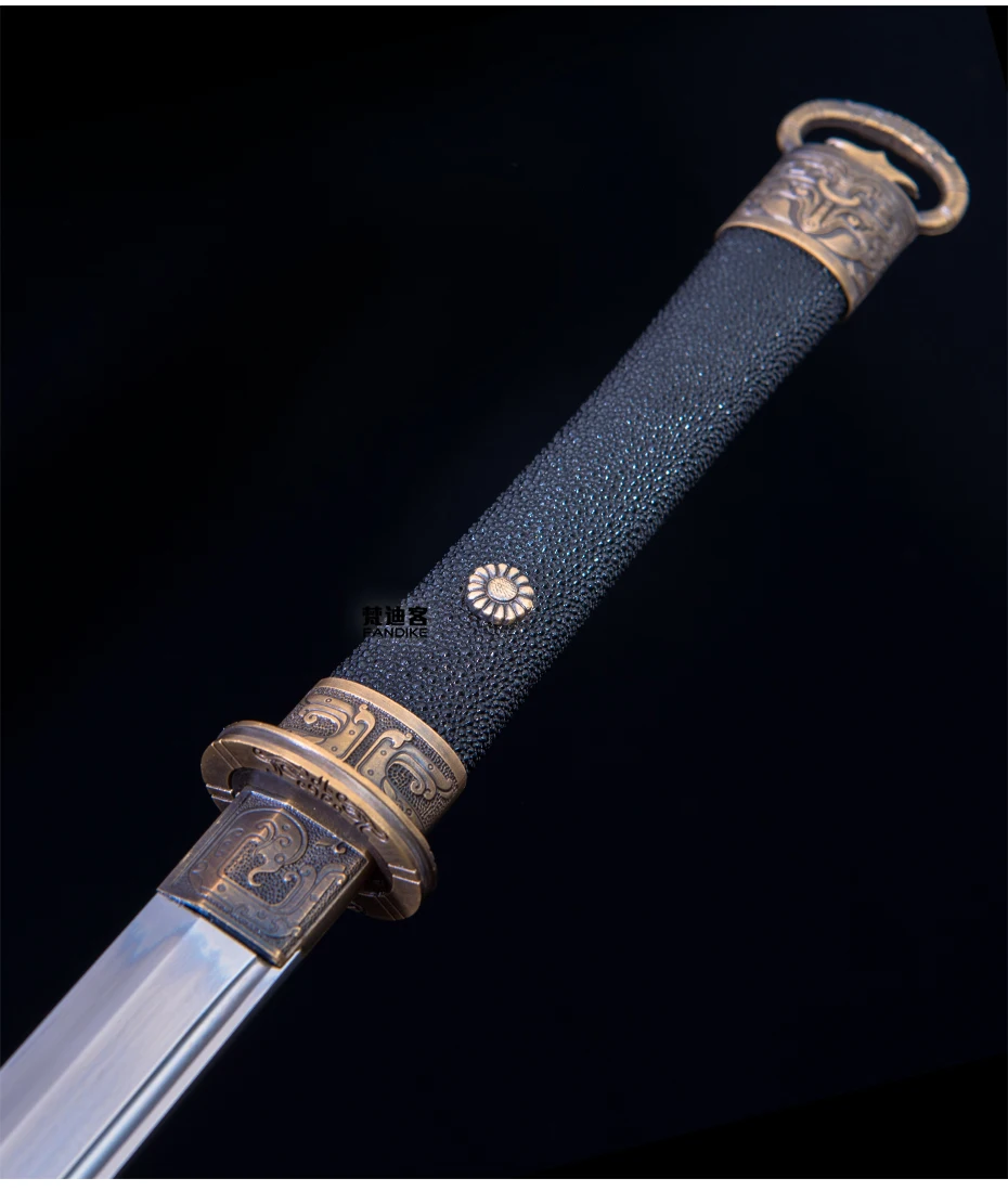 Общая длина: 103 см/40,6 дюйма Длина лезвия: 73 см/28,7 дюйма Длина ручки: 22 см/8,66 дюйма Ширина лезвия: 3,5 см/1,38 дюйма Толщина лезвия: 0,75 см/0,3 дюйма Резкость: острый Tsuba: Медь Сая: Tabebuia sp Материал лезвия: сталь с узором под твердым лезвием В городе лонгкуан, Китай, прошло более 2000 лет. FANDIKE обладает богатым и профессиональным опытом в создании мечей более 20 лет, что является интеграцией ковки, шлифовки, скульптуры и сборки. Кроме того, У нас есть все виды мечей, которые вы можете постоянно обращать внимание на то, что новое прибытие будет в ближайшее время регулярно.