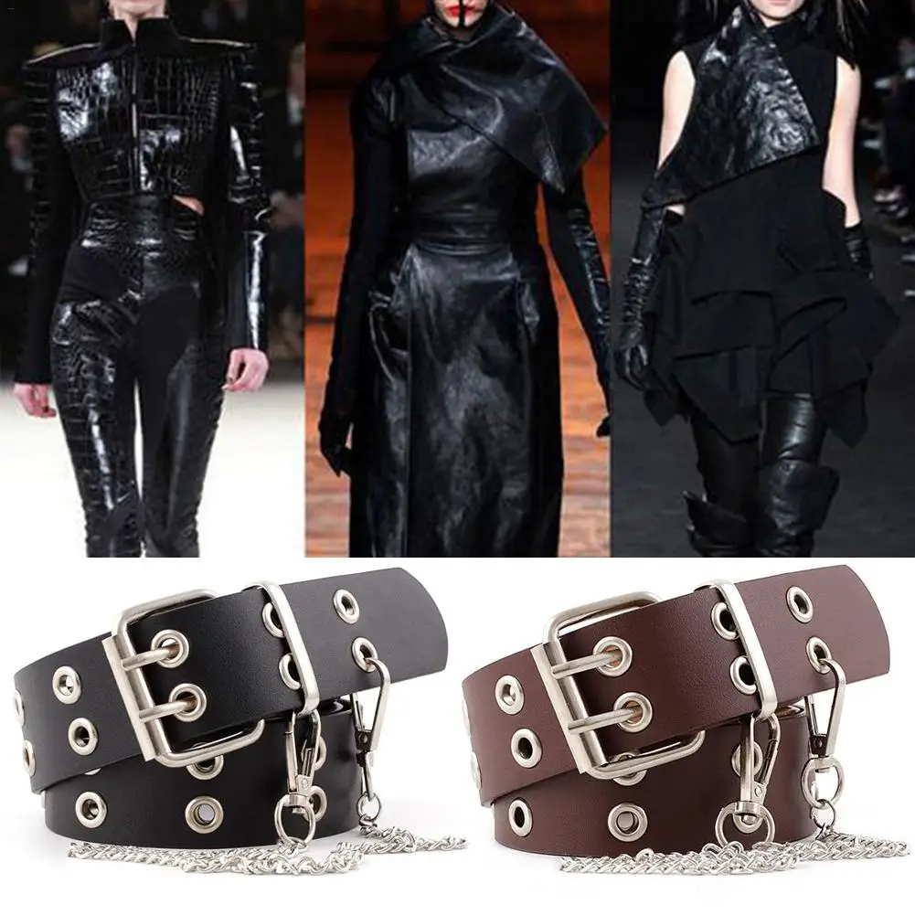 Двухрядный ремень с отверстием для мужчин и женщин, модный панк стиль с петелькой цепи, декоративный ремень для джинсов брюки