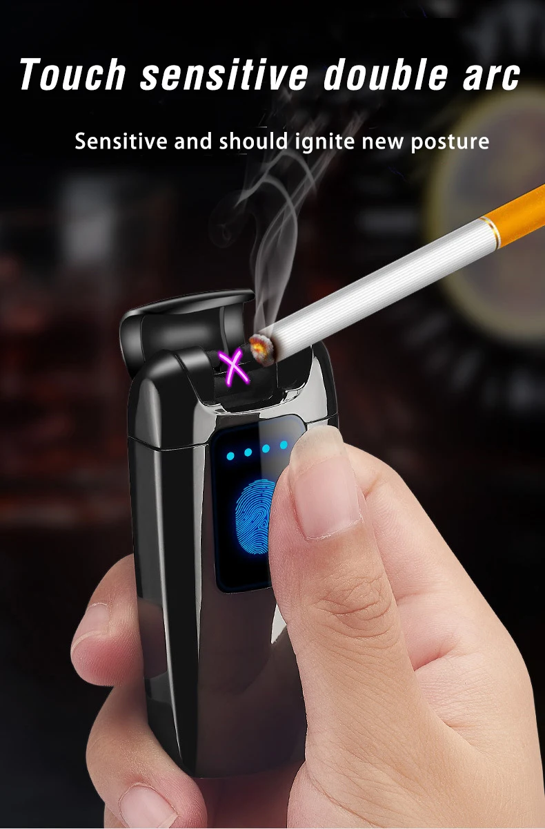 Новая двойная дуговая USB Электронная зажигалка для сигарет Сенсорное чувство ветрозащитная электрическая плазменная импульсная зажигалка Мужские подарки аксессуары для курения