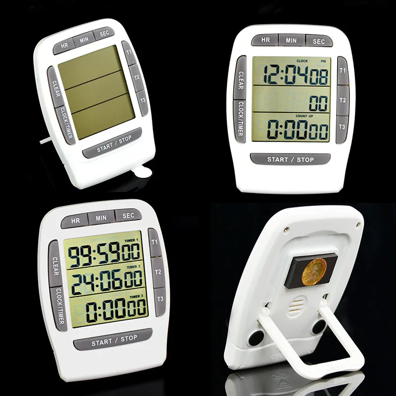 Цифровой ЖК многоканальный кухонный магнитный Таймер обратного отсчета лаборатория приготовления 3 канала таймеры час/мин/сек AM/PM гаджеты Инструменты