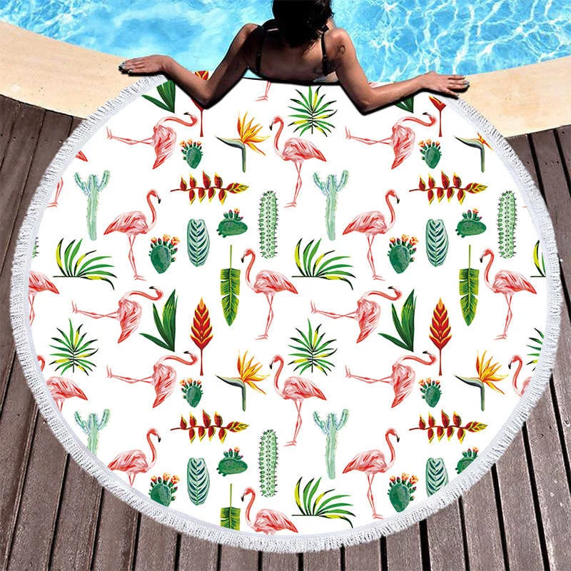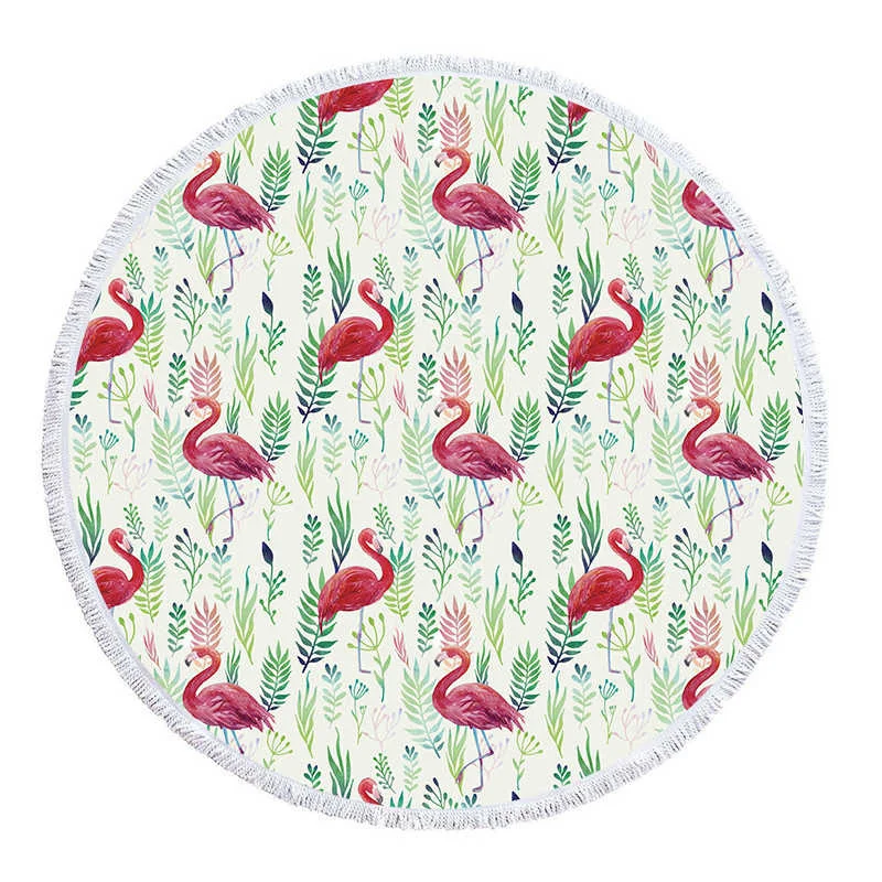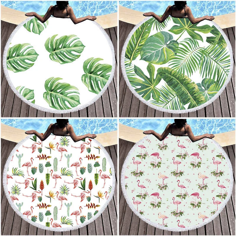 Пляжное полотенце с принтом фламинго, тропические растения, микрофибра, большое круглое полотенце, пляжное, подарок для детей, летние коврики для йоги, одеяло с кисточкой