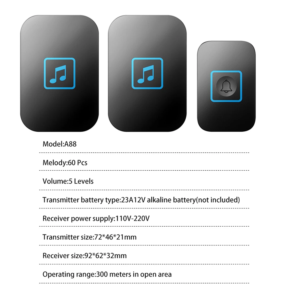 CACAZI беспроводной дверной звонок передатчик автономный дверной звонок, без каких-либо батареи,