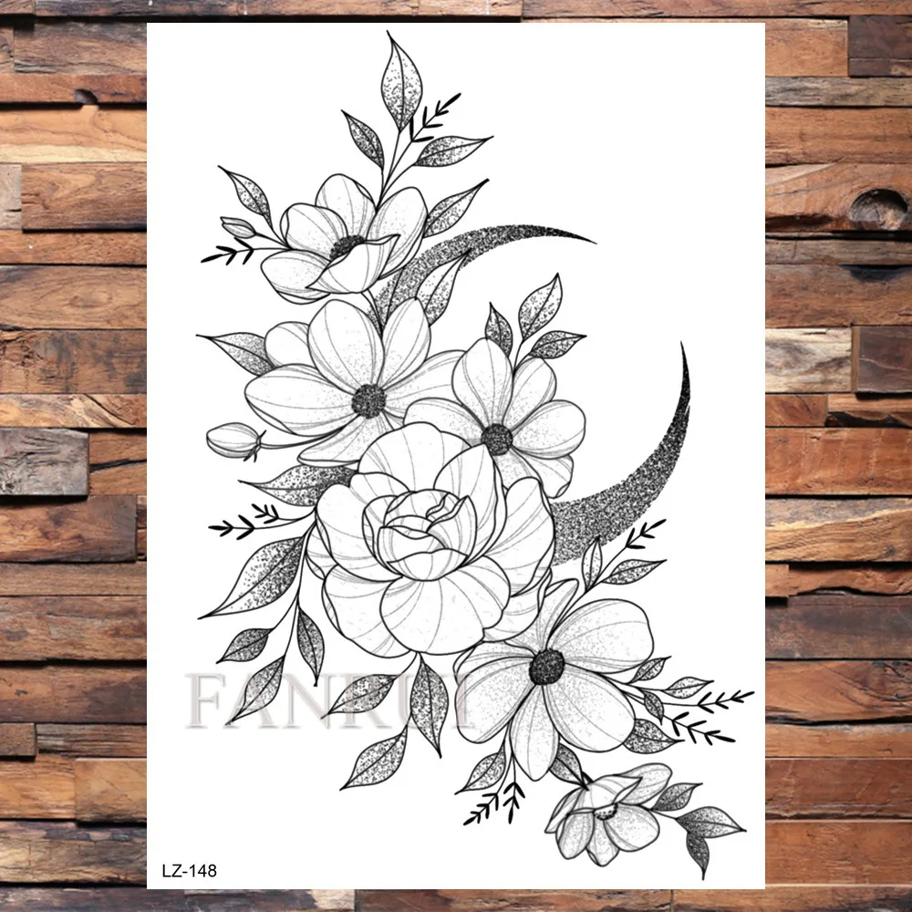 1 шт бегония цветы Bloosom Временные татуировки для женщин хна для Боди арта татуировки Сделай Сам поддельные cnendly Moon наклейка-тату розы вечерние макияж