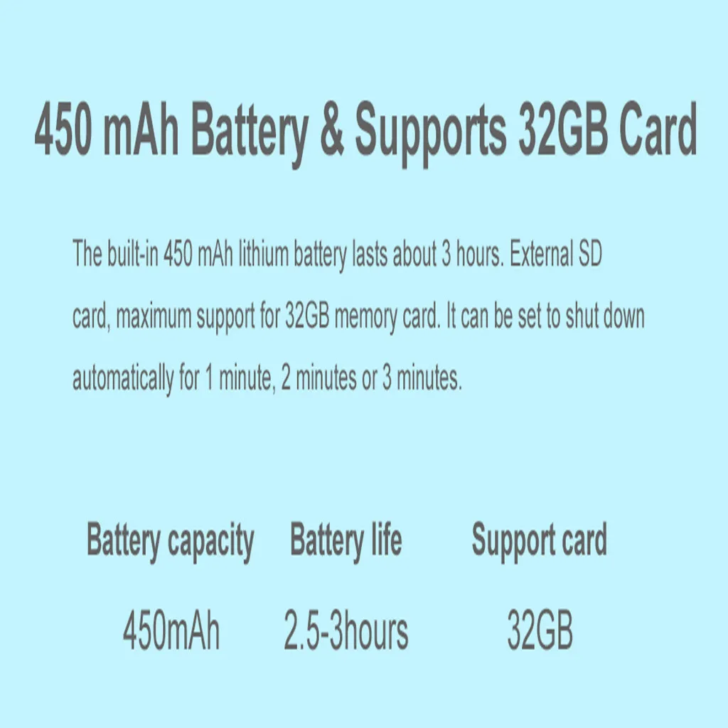Display: 2.0 inch IPS HD screen Main lens resolution: 2560 X 1920 Sub lens resolution: 1920 X 1440 Camera resolution: 1920 X 1080 Battery specification: 3.7V 450mAh Charging time: about 2 hours Life time: 2.5 - 3 hours Charging head: standard 5V 1A Maximum expansion: 32GB memory card Language: 14 languages including Chinese, English, Japanese, French, Korean, German, Spanish, etc. Function: photo sticker / filter / timing / auto color / auto focus / flashProducts include