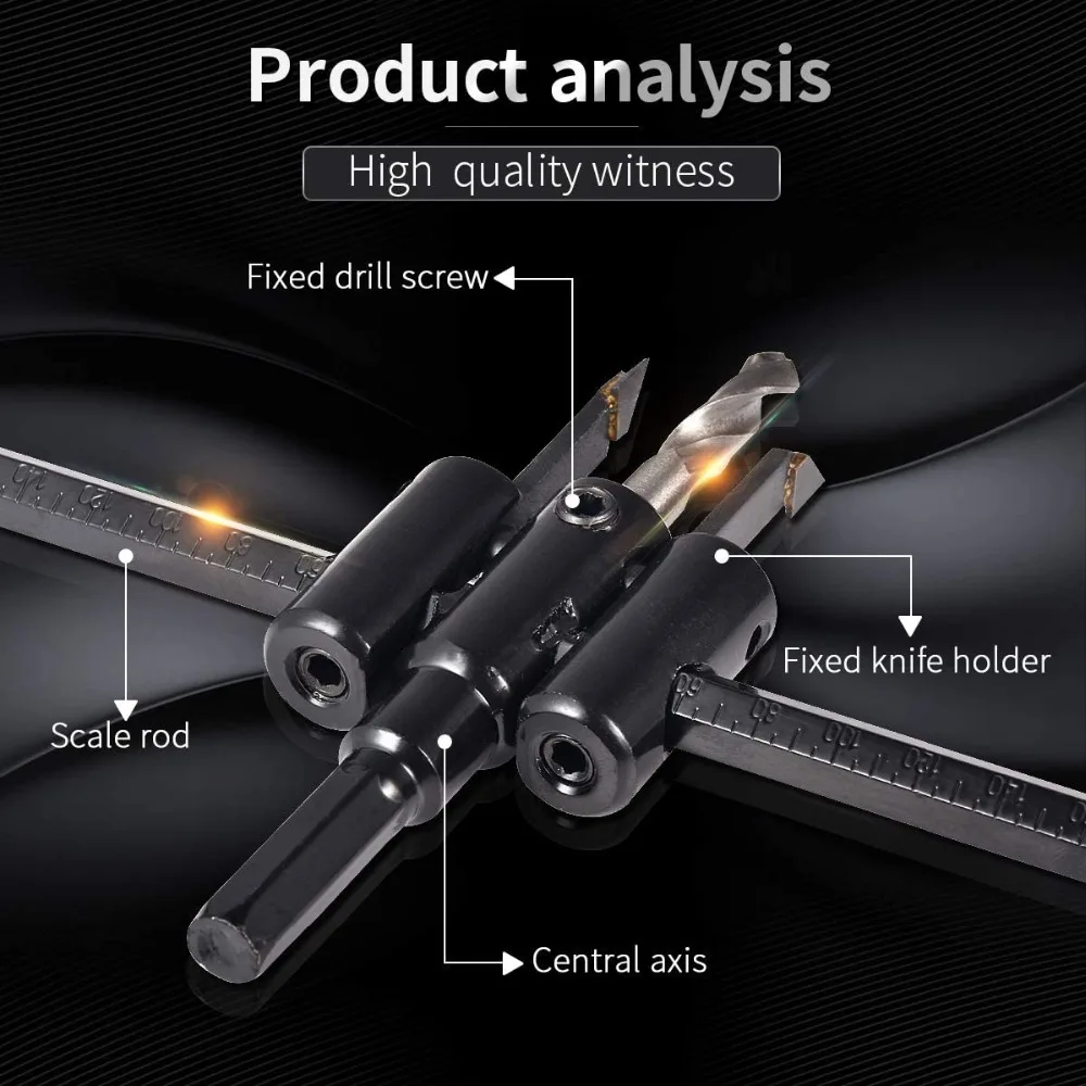 Усовершенствованный дизайн-предназначен для профессионального использования, сверхмощный круглый резак сделает чистые разрезы диаметром 30-200 мм. Лучше и быстрее-корпус из закаленной стали имеет маркированную градацию на балке для быстрого измерения и нанесения. Многоцелевой-будет резать фанеру, ламинаты, композитные доски, гипсокартон, пластик, резина, многие другие материалы. Большое значение-этот круглый резак с хвостовиком отлично подходит для изготовления гладких разрезов по большинству материалов, включая древесину, композит, листовой металл и многое другое. Идеальный выбор-можно использовать для резки многих видов материалов, таких как фанера, лиственных пород, ламинаты, композит, резина, пластик и т. д. Особенности: Сверхмощная деревообрабатывающая конструкция с длительным сроком службы инструмента. Регулируемые два для острых лезвий с обеих сторон измерительных стержней. -Регулируемая конструкция плоского типа. Регулируемая емкость 30-200 мм. Набор резцов + лезвия + центр сверл. Поставляется с шестигранным ключом и центральным сверлом. 2 сменных центра для более тонких или толстых материалов. Можно использовать для резки многих видов материалов, таких как фанера, лиственных пород, ламинаты, композит, резина, пластик и т. д. Использование: сверление древесины Принадлежности для рукоделия: Деревообработка Материал: легированная сталь Упаковка включает: 1 x набор регулируемых кольцевых резцов