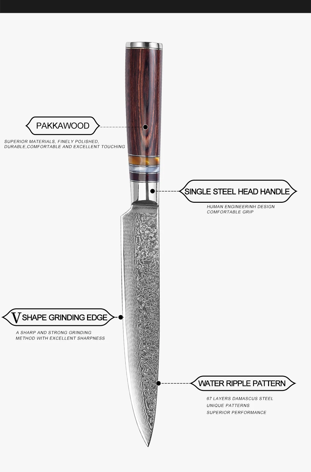 Изготовлен из 67-слой дамасской Сталь импортируется из Японии. VG-10 стальной режущий сердечник;