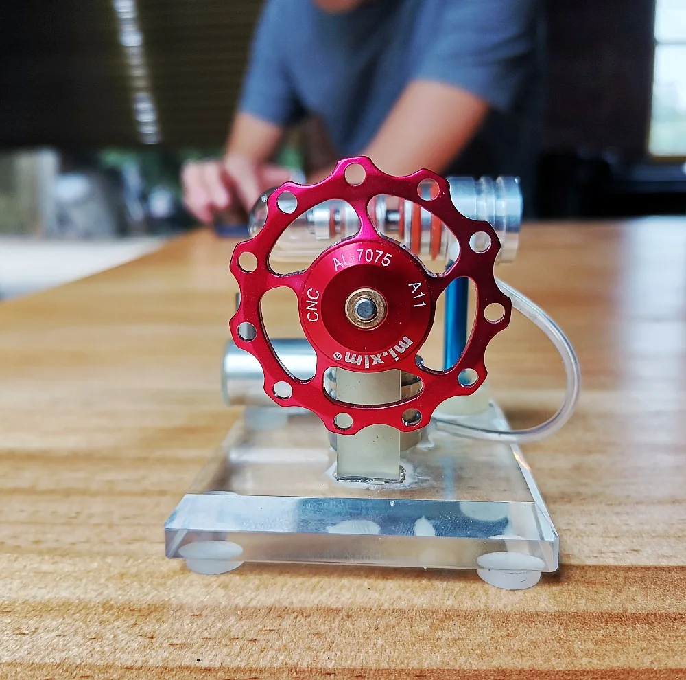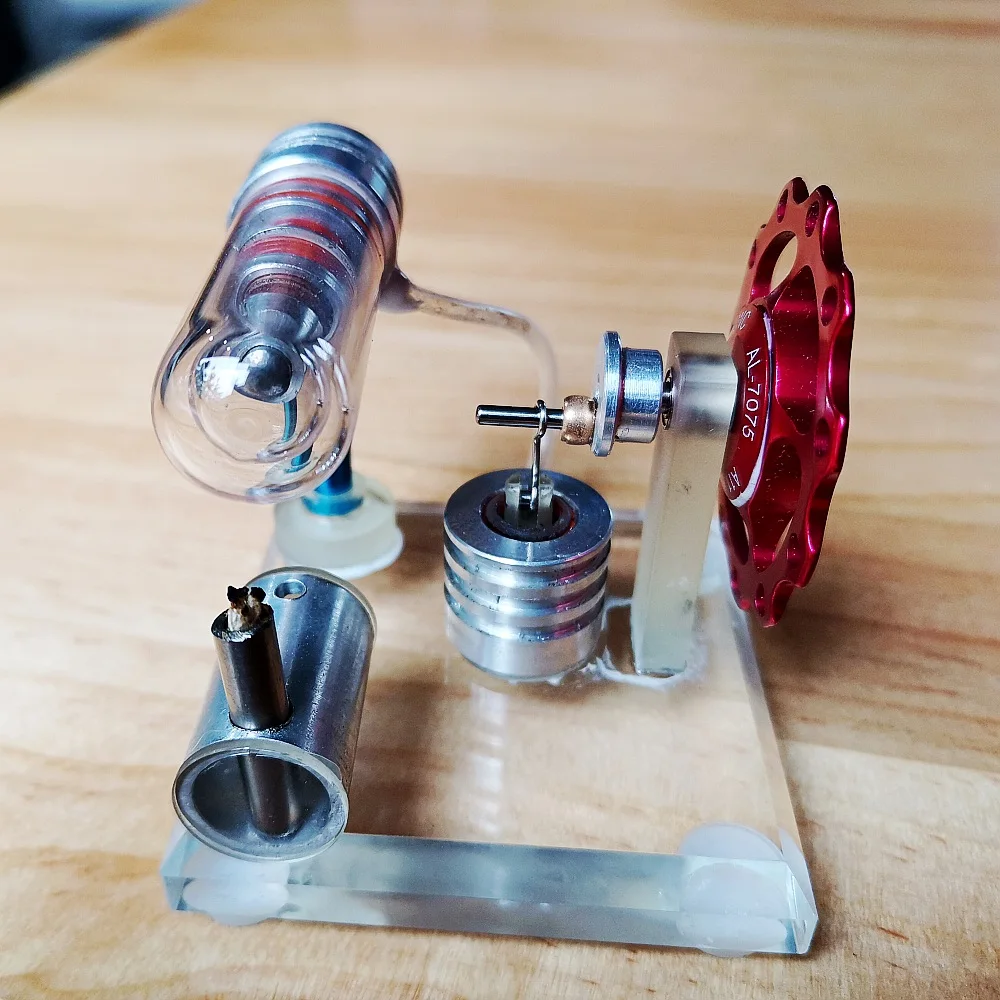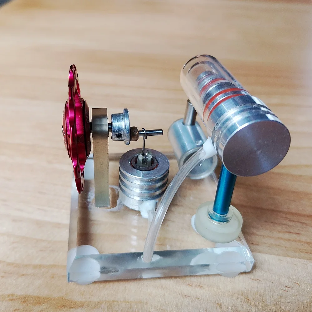 Это небольшая Модель двигателя Стирлинга. Использование принципа теплового расширения и сжатия газа, гениальная механическая конструкция Управляемый внешним источником тепла, может быть выполнена непрерывная работа. Кварцевое стекло используется, поэтому нет необходимости беспокоиться о поломке стекла. Спирт выше 95% должен использоваться для топлива