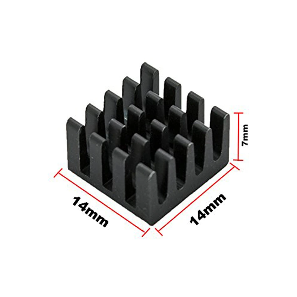Specifications: Color: black Size: 14 x 14 x 7 mm long * wide * high Material: Aluminum Alloy Compatible with : for raspberry PI 2, raspberry PI B/B+, raspberry PI A/1+Bridge North VGA RAM, MOSFET, DC hoist power converter, power converter, LED lamp, etc. Package inclusion: 10 x aluminium alloy heatsink