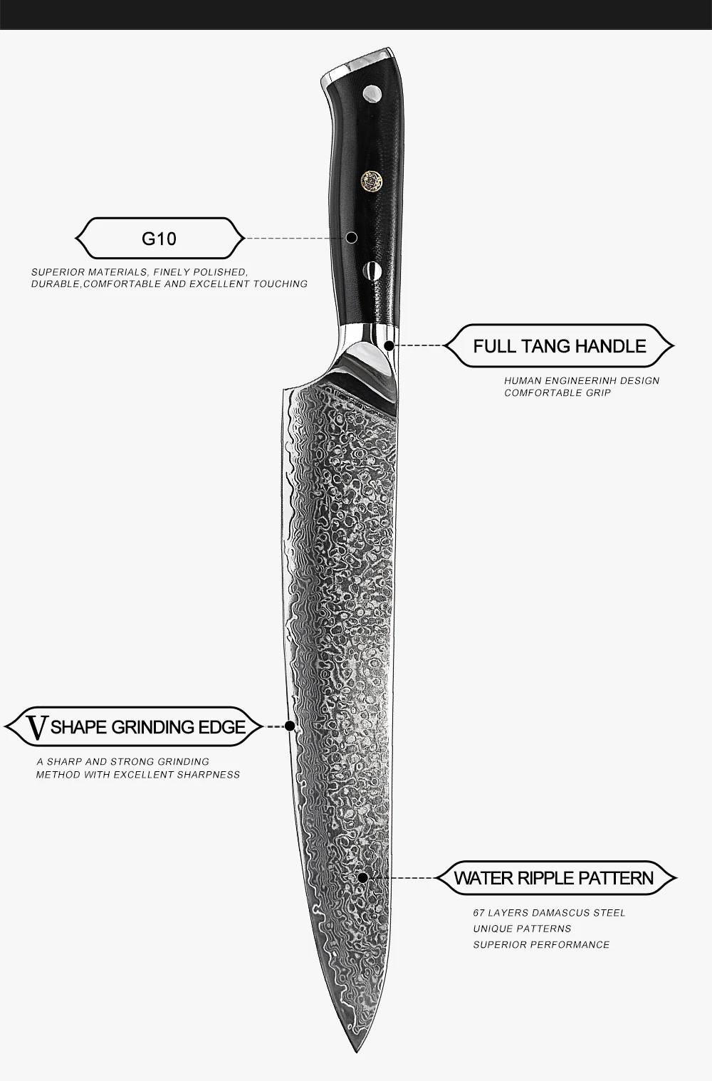 * Ручка G10, прочная, нескользящая, легко моется, удобна и красива.