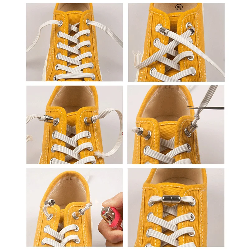Плоские эластичные шнурки без застежки с металлической пряжкой