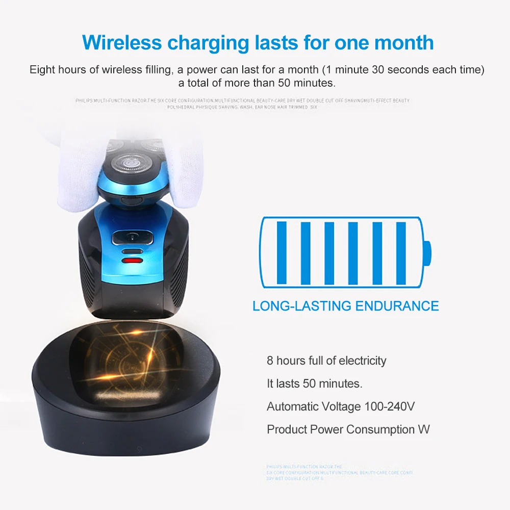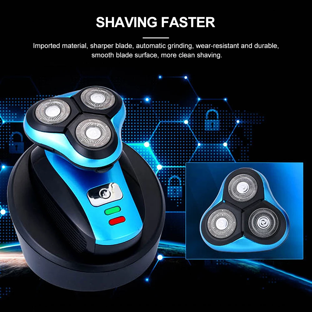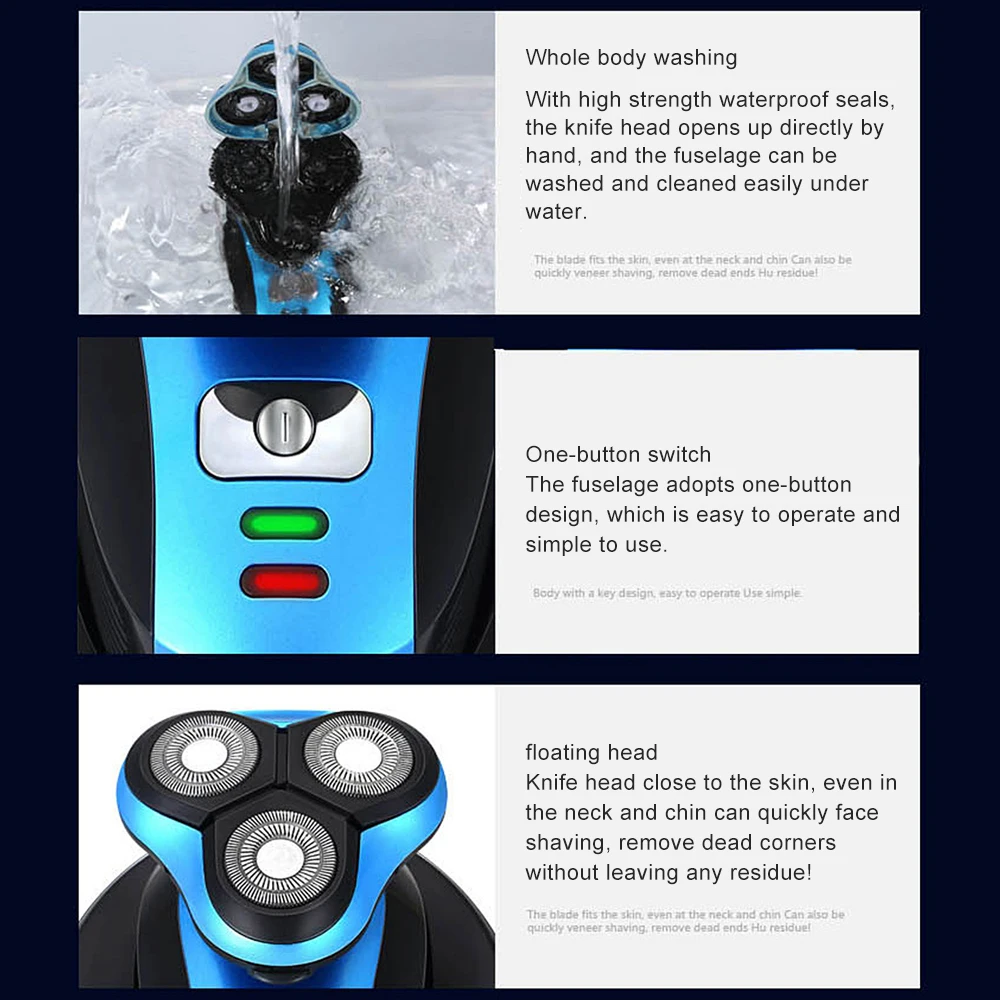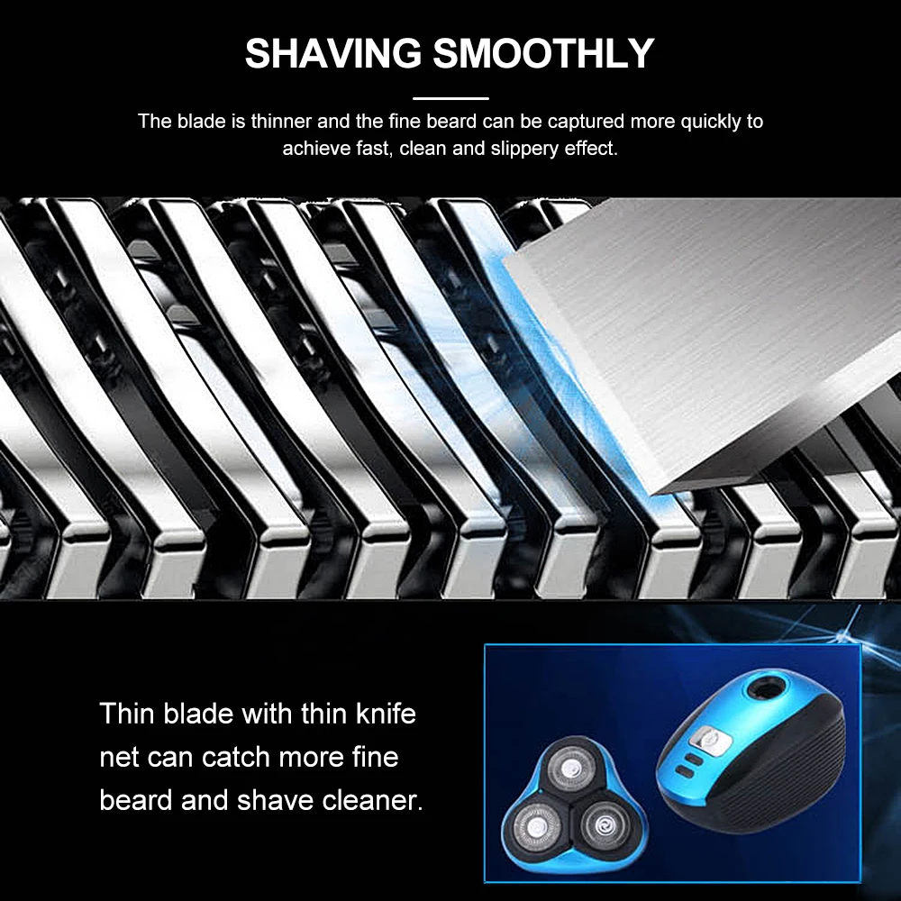 Три независимых плавучих лезвия, плотно прилегают к контурам лица, бритье более быстро и тщательно.