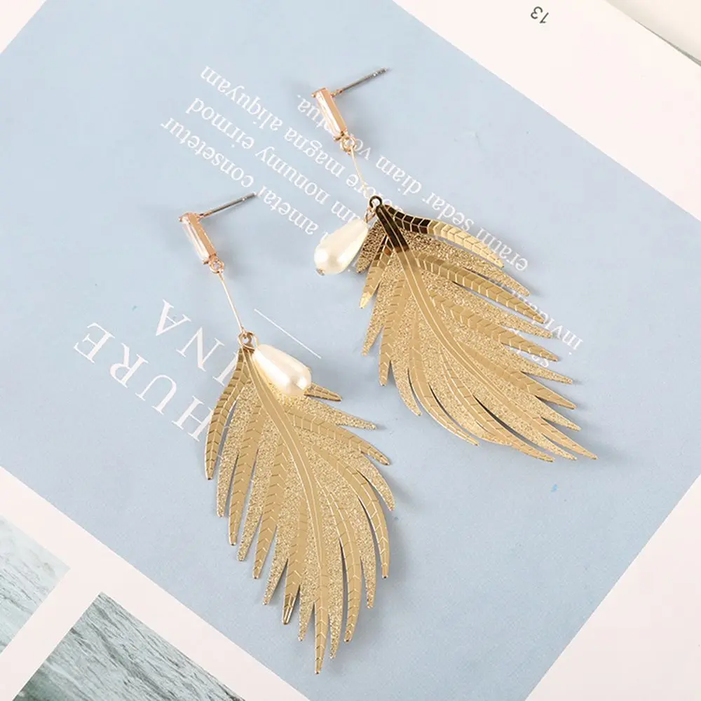 Материал: акриловых перламутровых + сплав Стиль: висячие серьги Цвет: золото Серьги Размеры: 9*3 см Посылка: 1 пара серьги-гвоздики