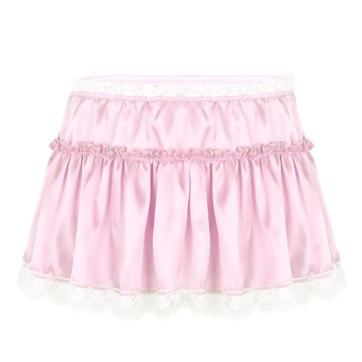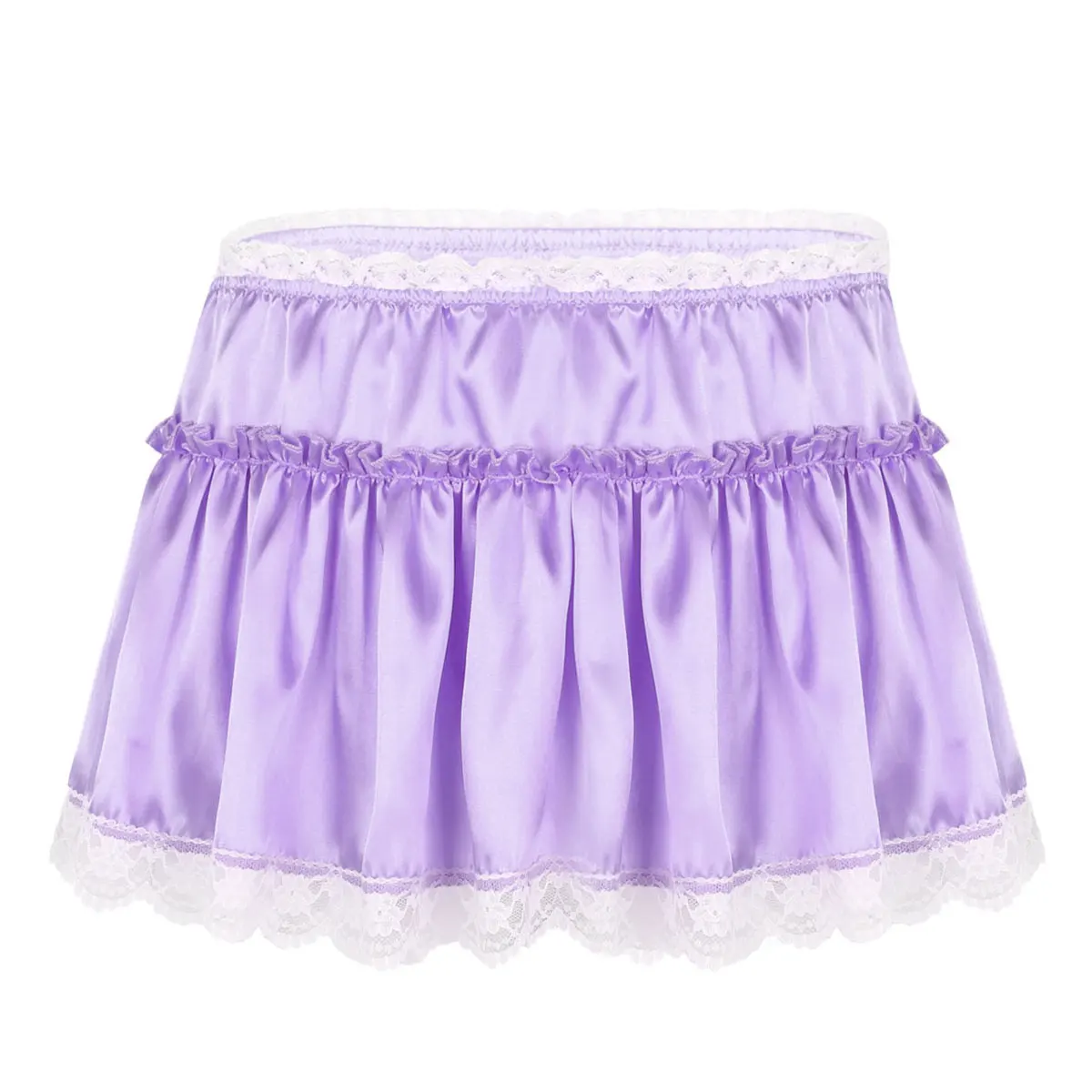 Мужская атласная мини-юбка с оборками для взрослых, однослойная, с застежкой
