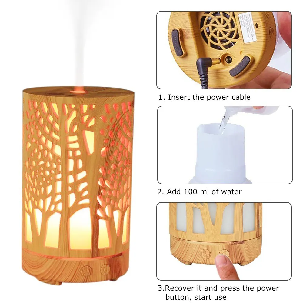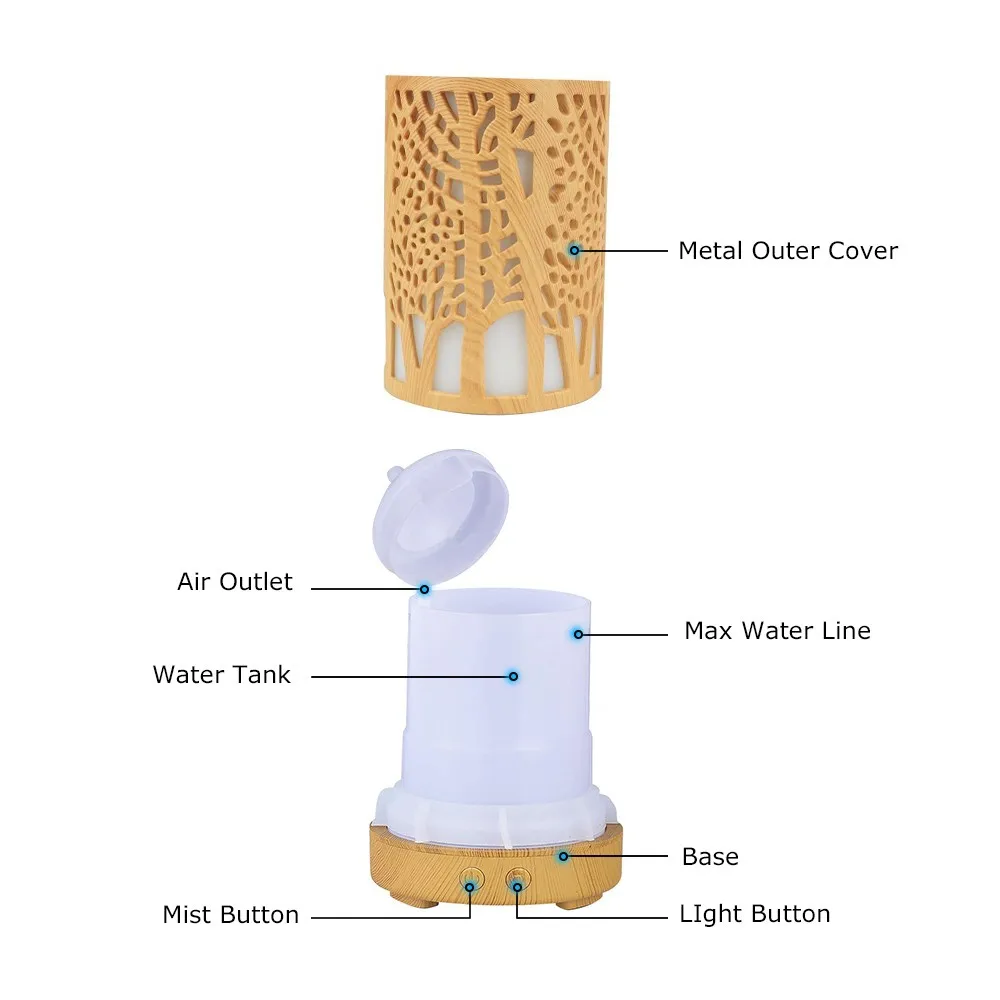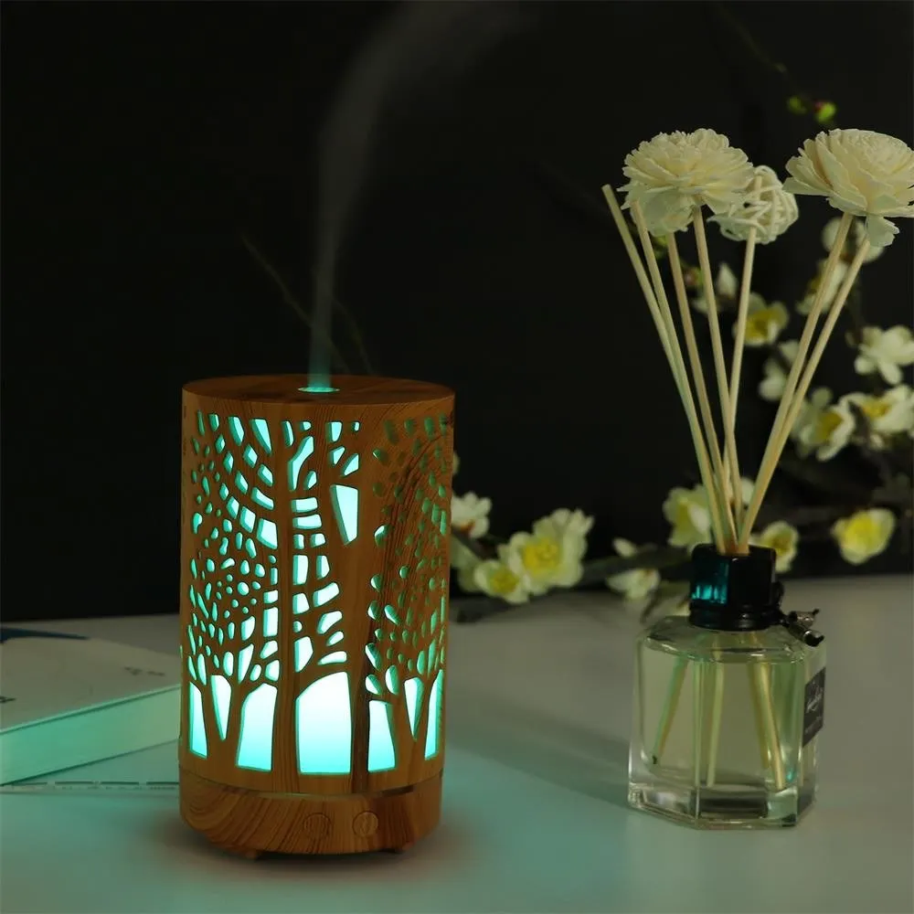 Ажурный дизайн делает светильник более мягким, а внешний вид ароматического диффузора придает бамбуковую текстуру и ближе к естественной красоты. Он дарит нам прекрасный аромат дома, заставляет нас расслабляться и наслаждаться жизни. Используя ультразвуковую технологию, этот распылитель ароматического масла производит гладкий и непрерывный туман для увлажнения воздуха и аромата дома. Бесшумная работа Whisper не влияет на качество сна.