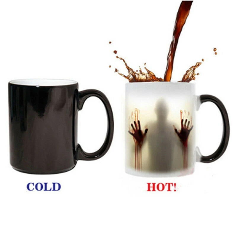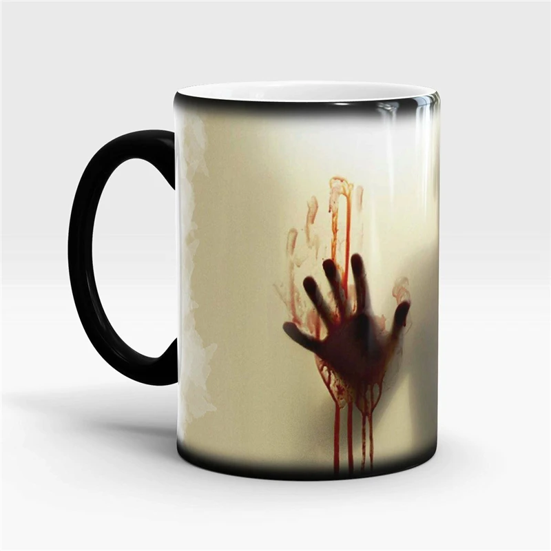 Термоменяющаяся цветная кружка, чашка для ходячих мертвецов, чашка для кофе, чувствительная волшебная, подарок на Хэллоуин, волшебная кружка для ходячих мертвецов зомби, меняющая цвет