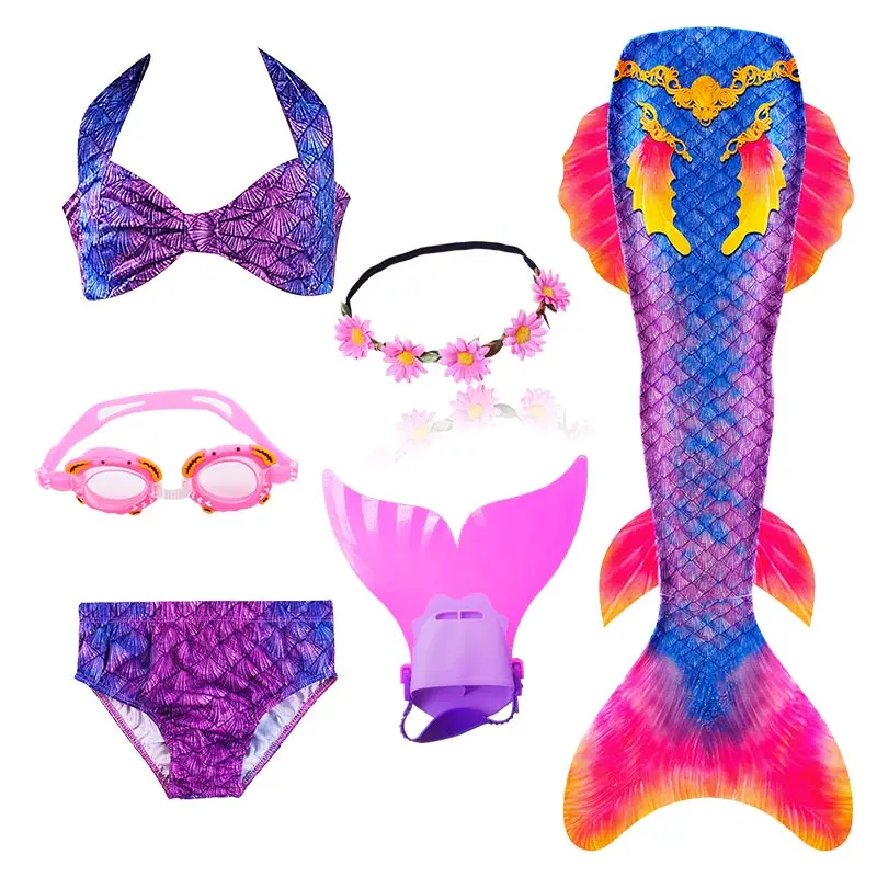 Посылка1:1 * хвост русалки + 1 * бюстгальтер + 1 * шорты + 1 монофин + 1 гирлянда + 1 * очки