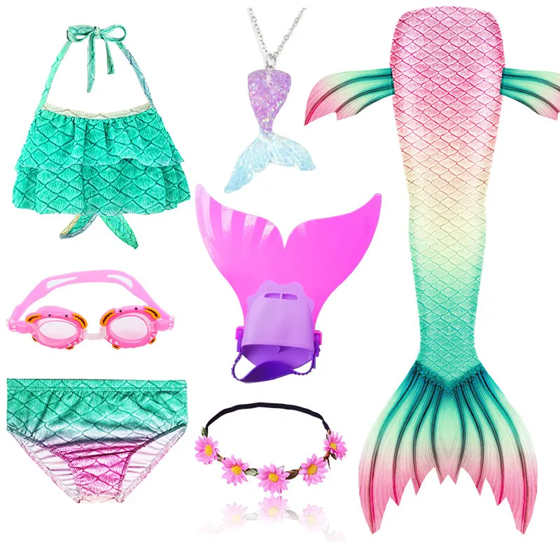 Посылка2:1 * хвост русалки + 1 * бюстгальтер + 1 * шорты + 1 * монофин + 1 гирлянда