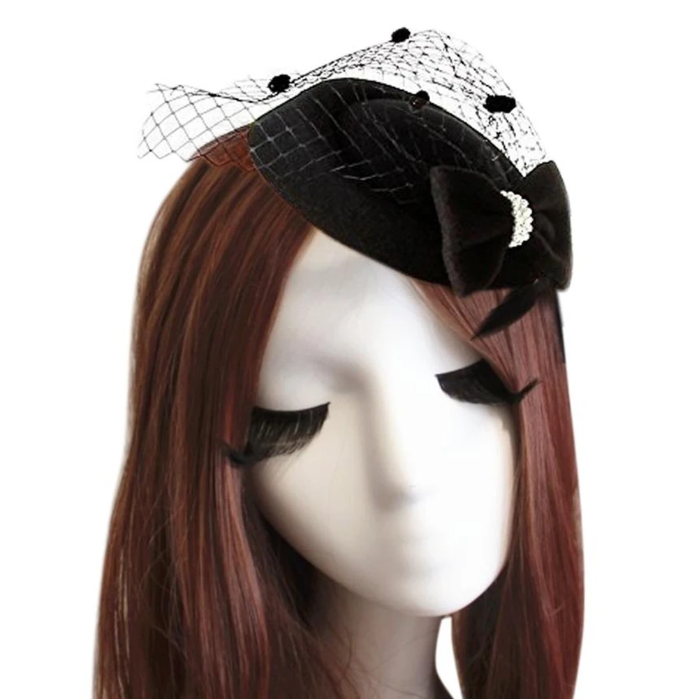 Винтажный сплошной цвет сетка искусственный жемчуг женский головной убор заколка для волос вечерние Дерби шляпа