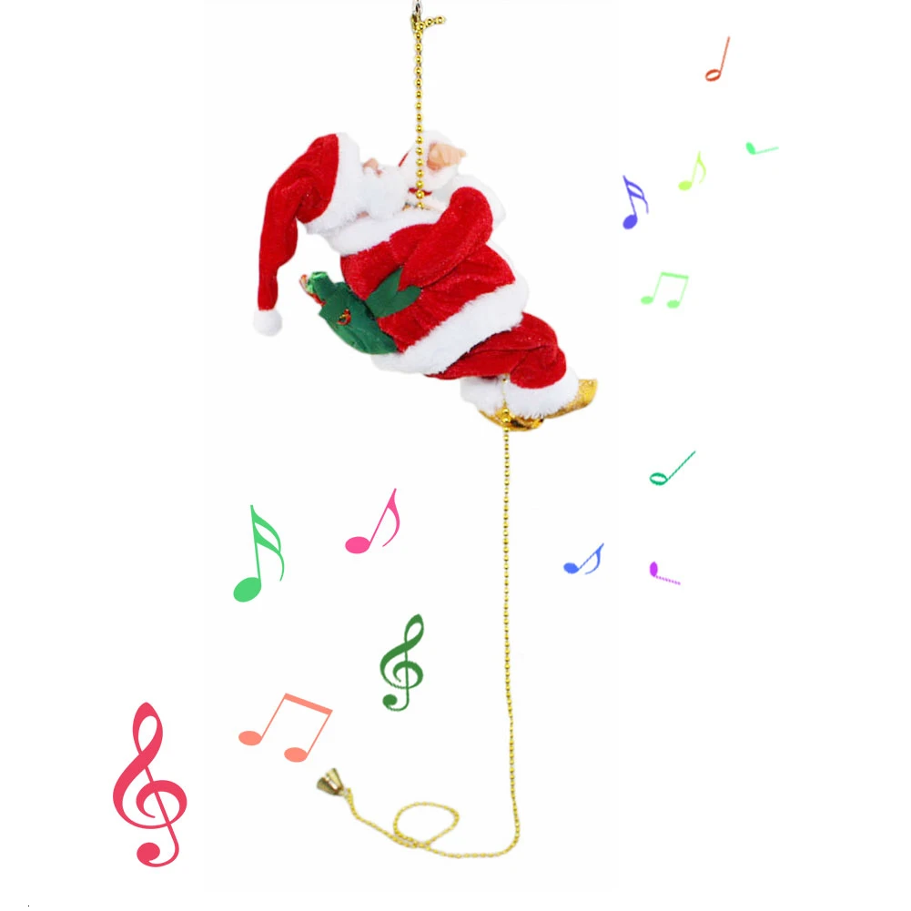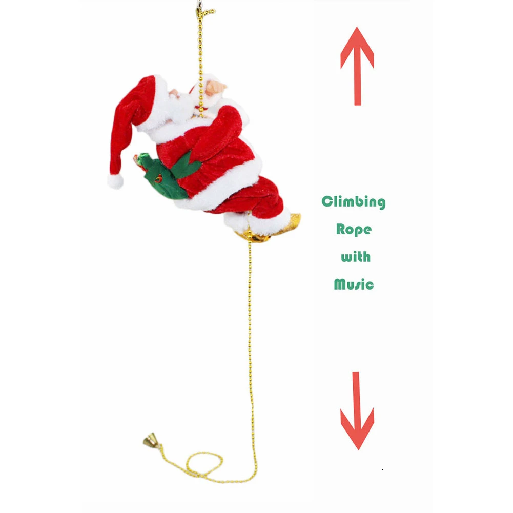 2. Два Санты используют 3XAA и 2XAA батареи соответственно (не входят в комплект). После включения питания, санта может сделать музыку и залазить вверх и вниз лестничная веревка, что очень интересно и мило.